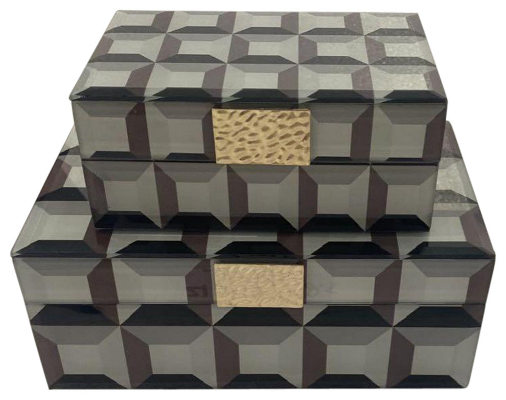 SKU - SBH-16788-01Sagebrook Home Wood, Set of 2 6/8" Checkered Boxes, Black/White Available at Uber Bazaar