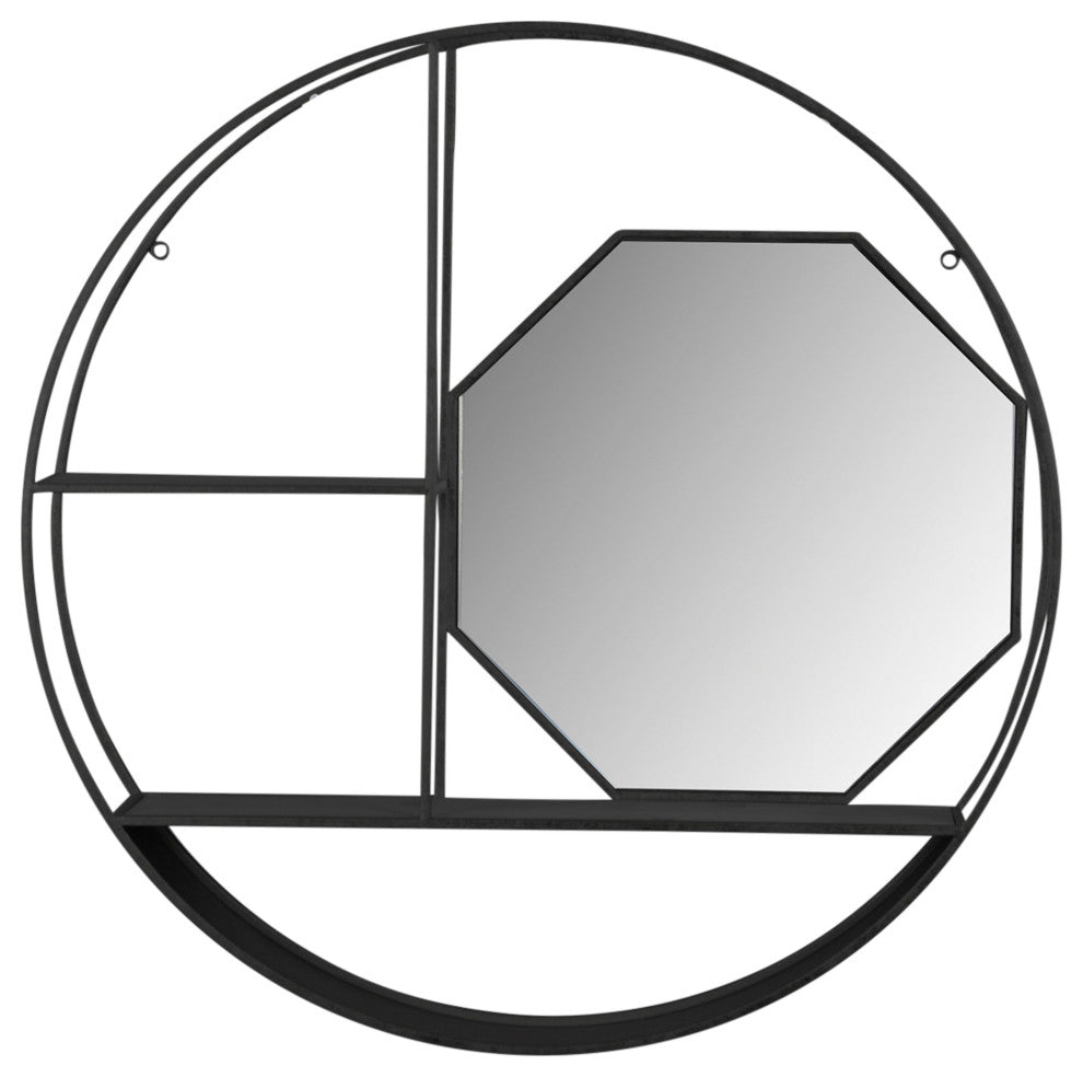 Sagebrook Home 16880-02 Metal/Wood 28" Round Wall Shelf With Mirror, Black