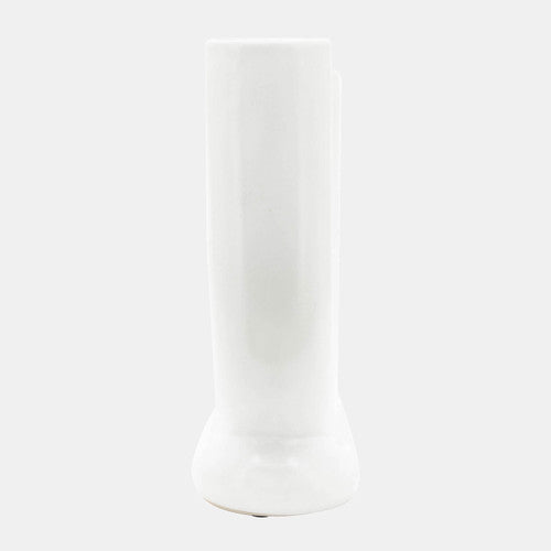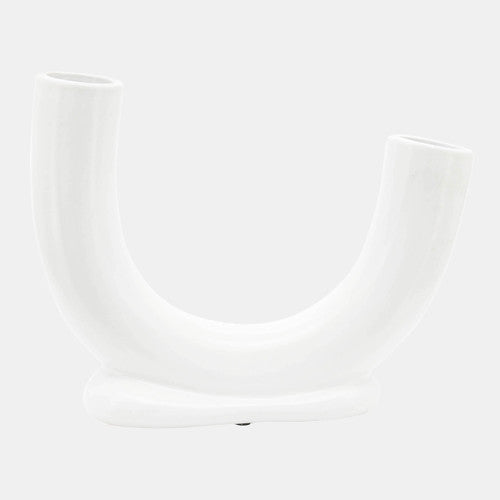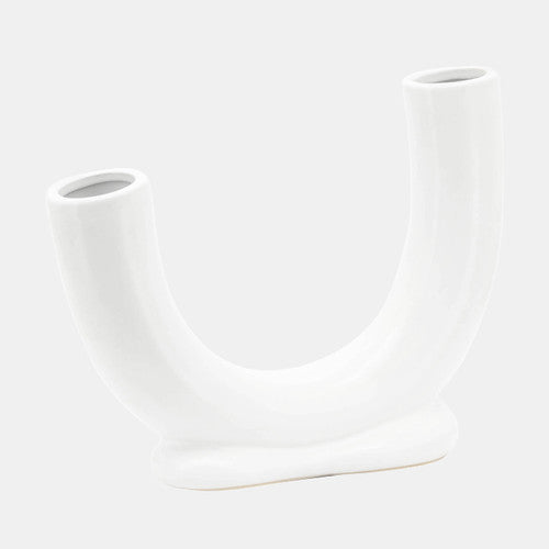 SKU - SBH-16911-02Ceramic, 8" U-Shaped Vase With Base, White