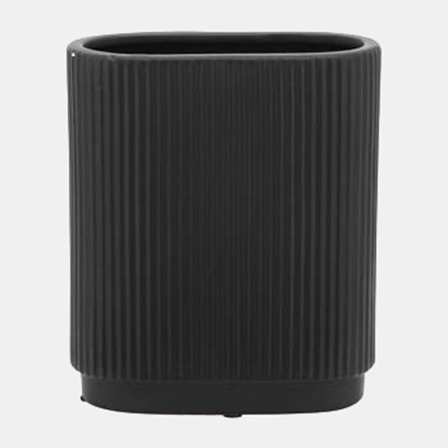 SKU - SBH-16937-04Ceramic, 8" Ridged Vase, Black