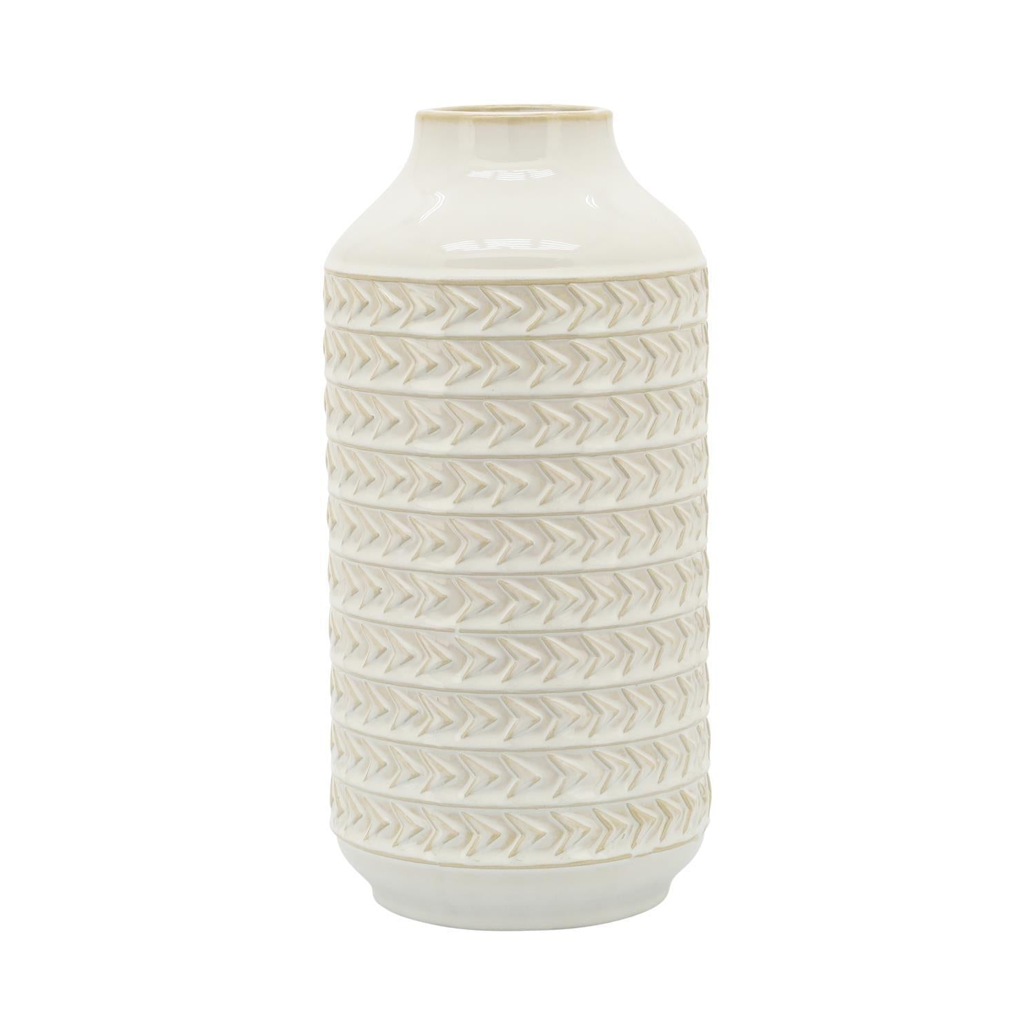Sagebrook Home 16987-02 Ceramic, 13" Aztec Vase, Ivory
