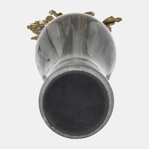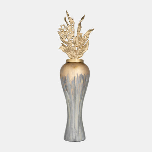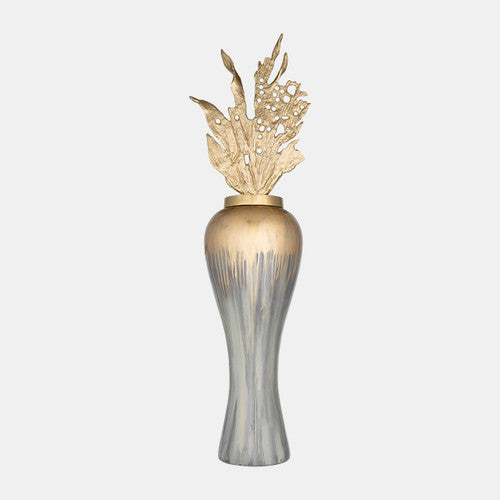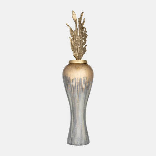 Sagebrook Home 17180-02 43" Meta Vase With Leaf Like Lid, Wickhom Gray