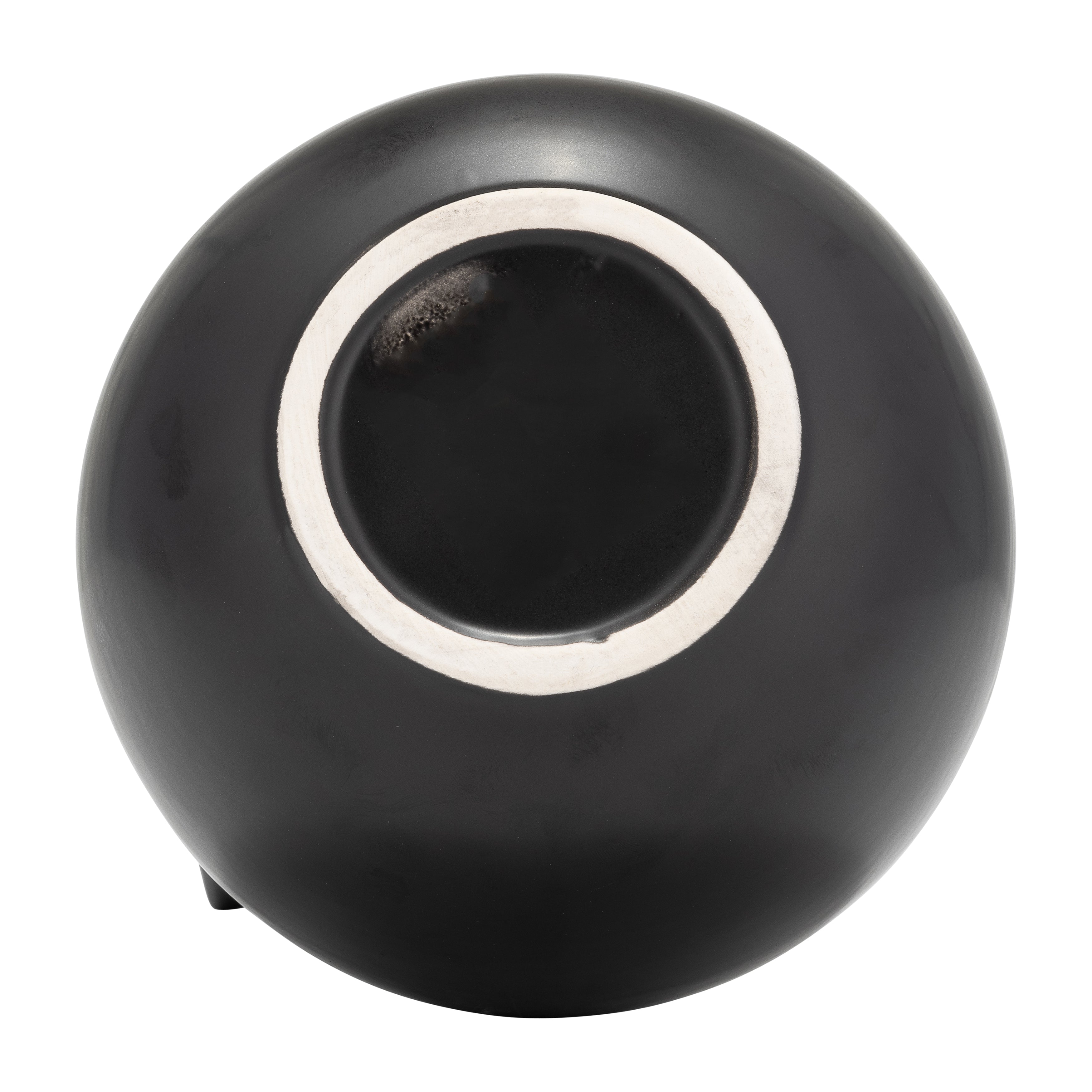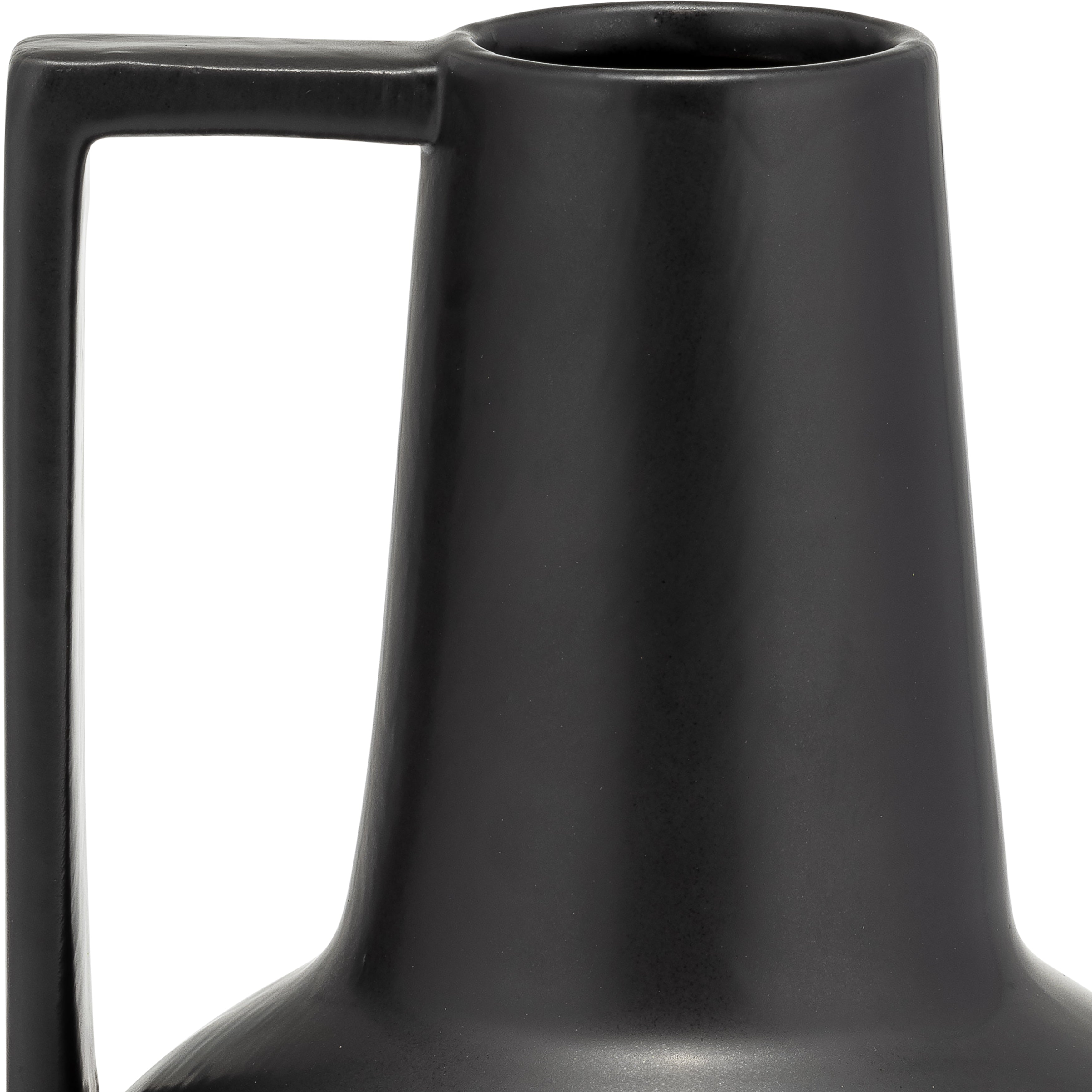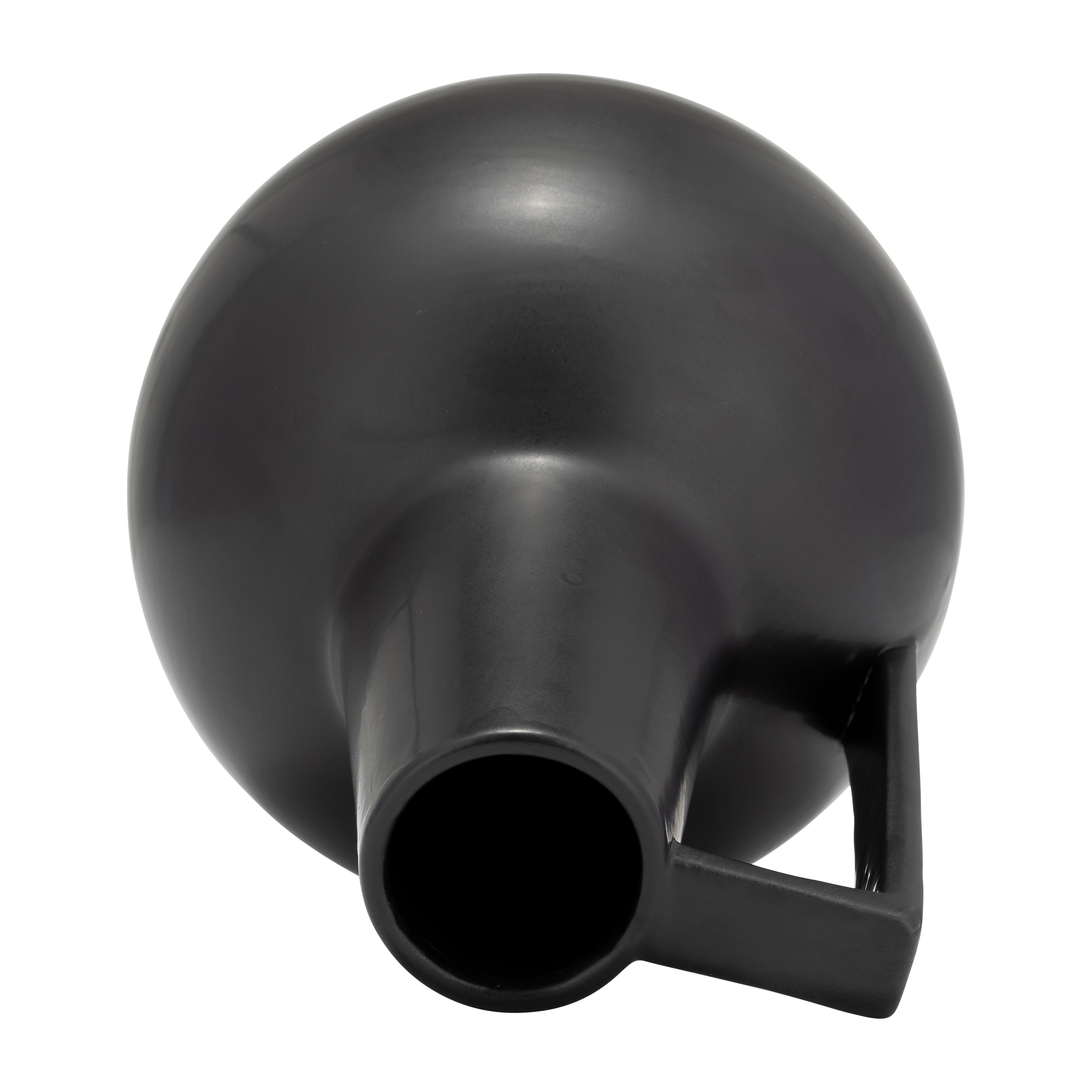 This trendy small vase features a small rounded shape on bottom with a narrow neck accented by a unique handle. It comes in a gorgeous black.