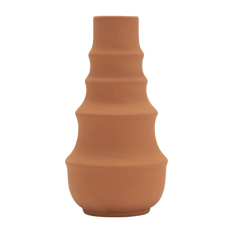 SKU - SBH-17420-04Ceramic, 11", Ring Pattern Vase, Terracotta