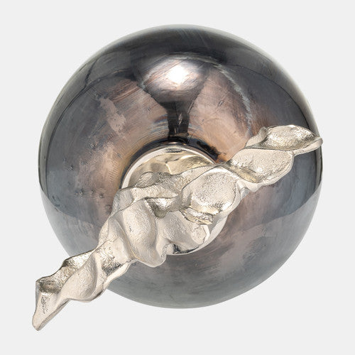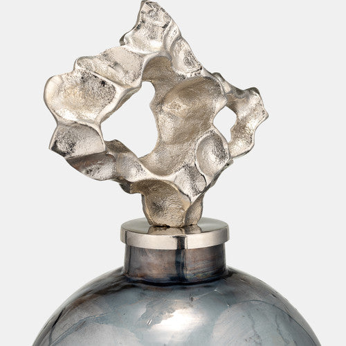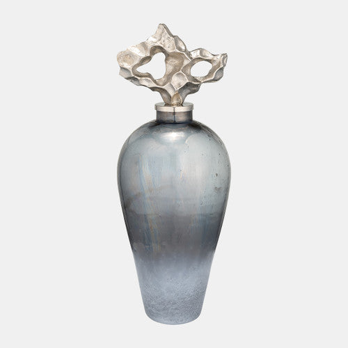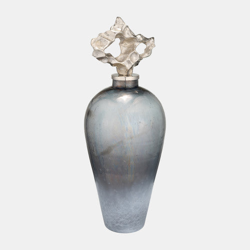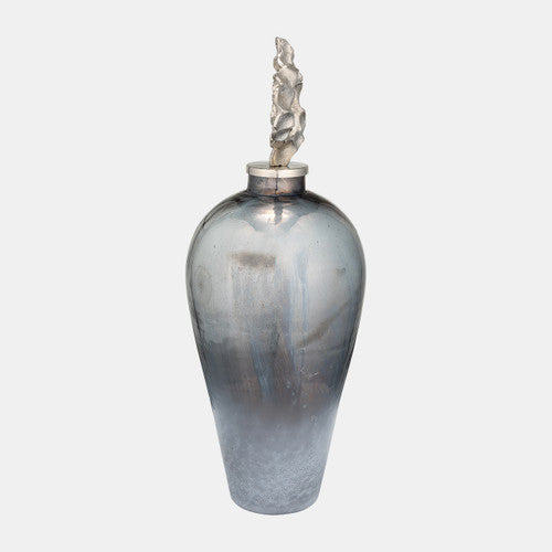SKU - SBH-17571-02Metal, 23" Vase With Textured Lid, Gray/Silver