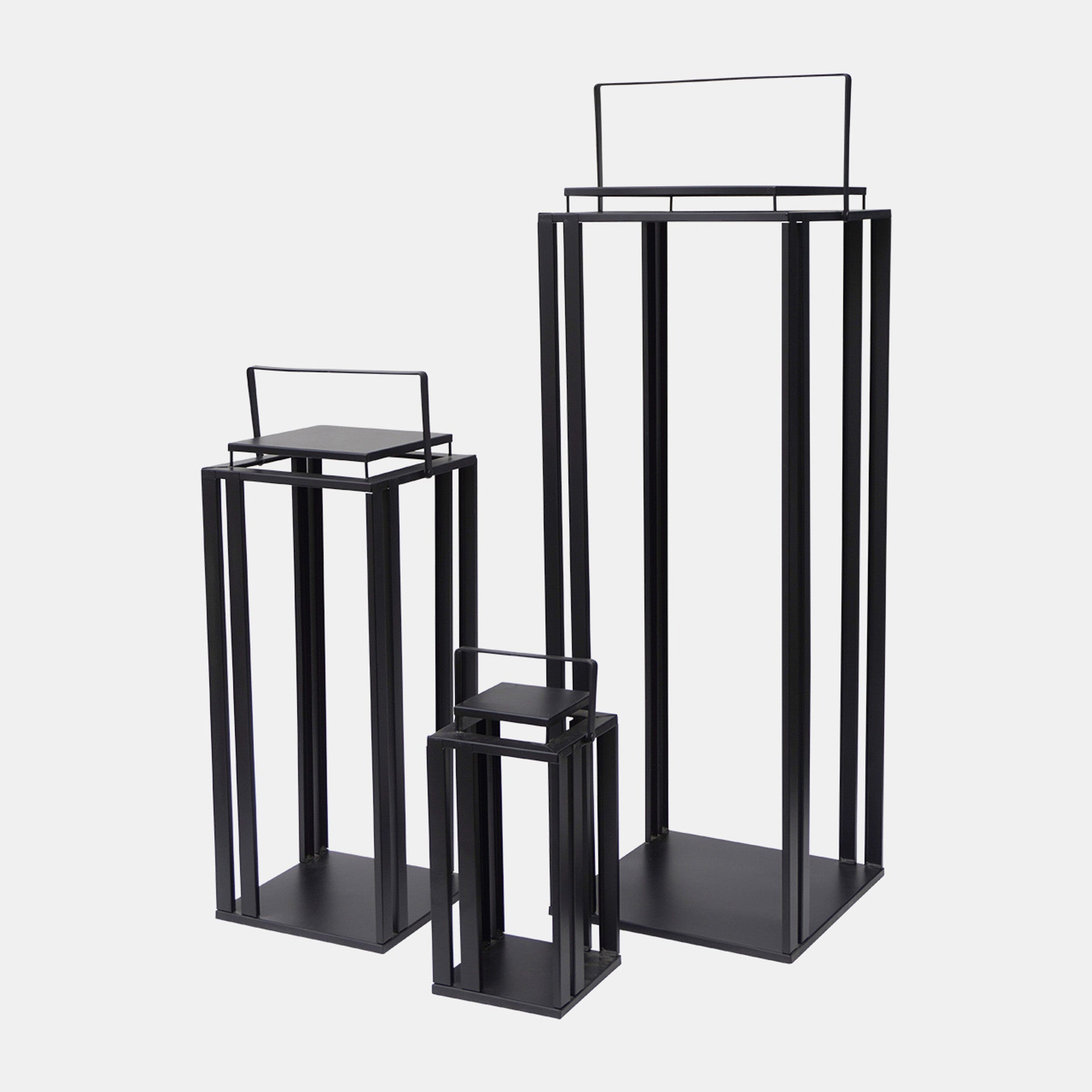 SKU - SBH-17615Metal, 13/24/36 Open Square Lanterns, Set of 3, Black