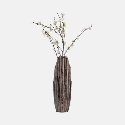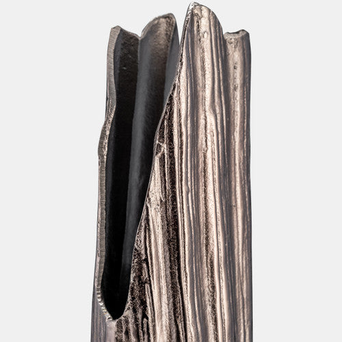 SKU - SBH-17792-02Metal, 20", Abstract Ridged Vase, Blk Nickel