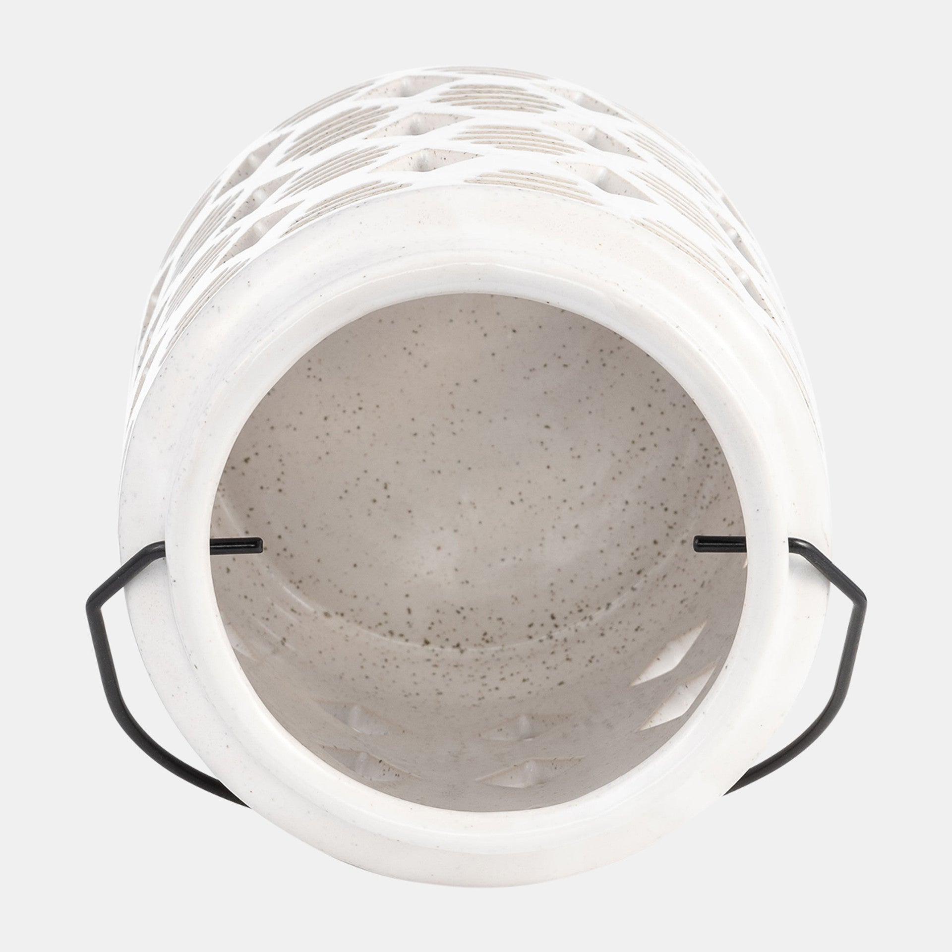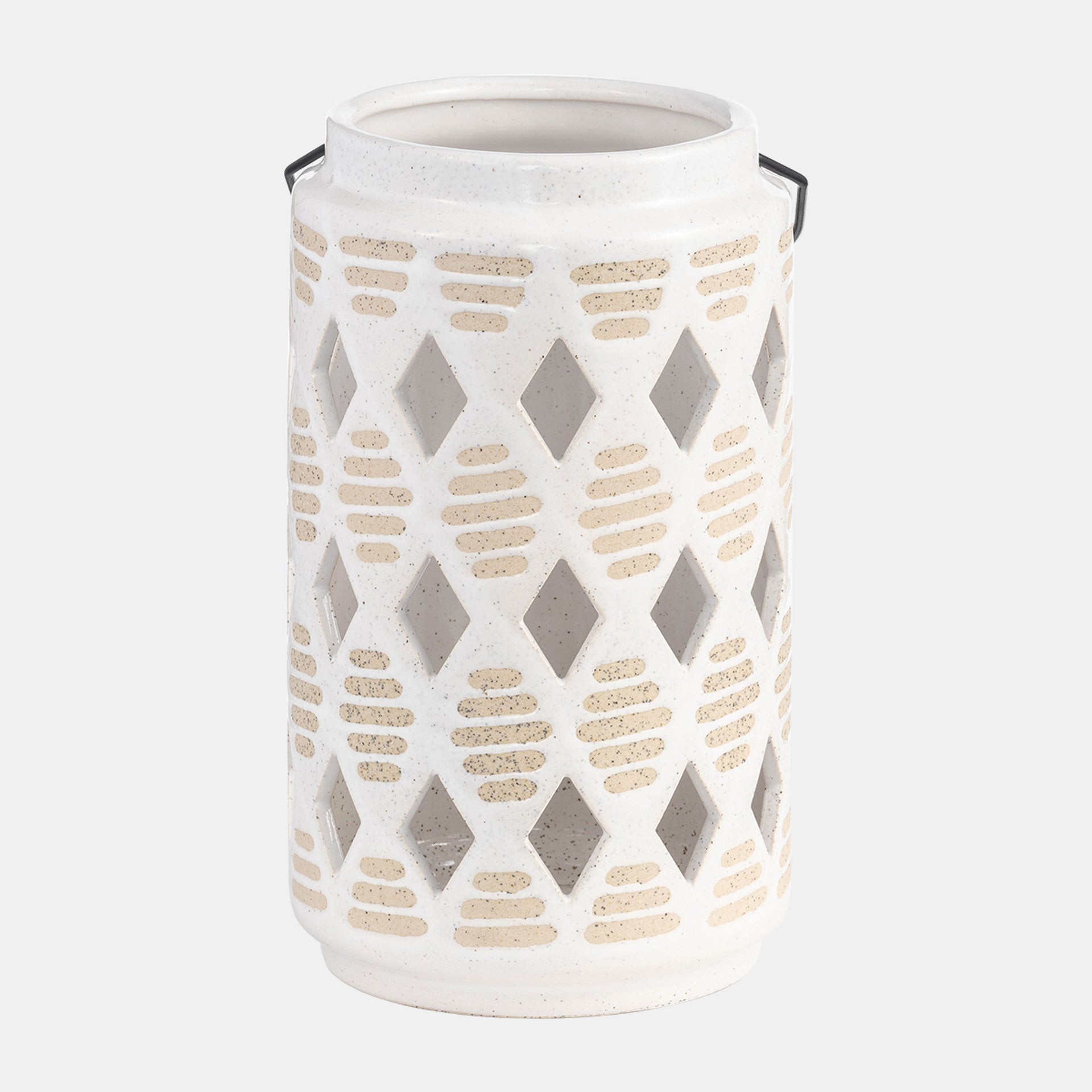 SKU - SBH-17998-02Sagebrook Home 17998-02 Ceramic, 9" Diamond Cut Out Lantern, Ivory