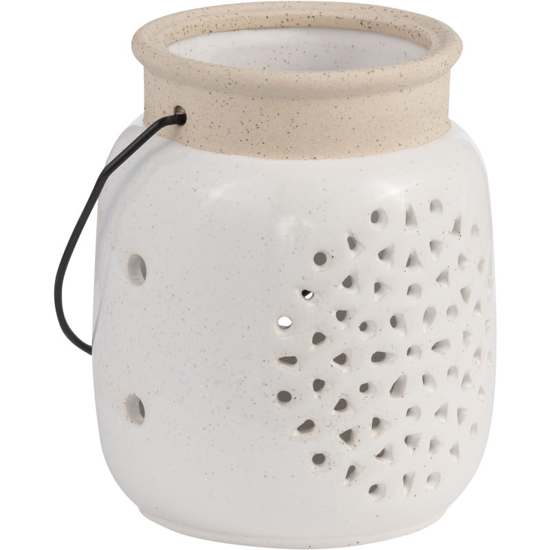 SKU - SBH-18001-01Ceramic, 6" Flower Cut Out Lantern, Ivory
