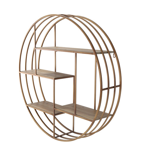 The classic and unique round silhouette of this wall shelf make it a must-have for any wall in need of style. An interesting display on its own, this round metal shelf has room to display the things that make your space your own. Crafted of metal, this shelf features 3 surfaces and 6 compartments to display your treasured objects or your favorite books and design essentials.