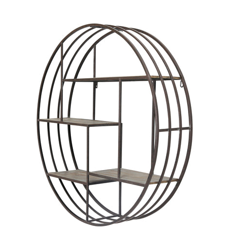 SKU - SBH-11050Sagebrook Home Round Wood/Metal Wall Shelf Only at Uber Bazaar