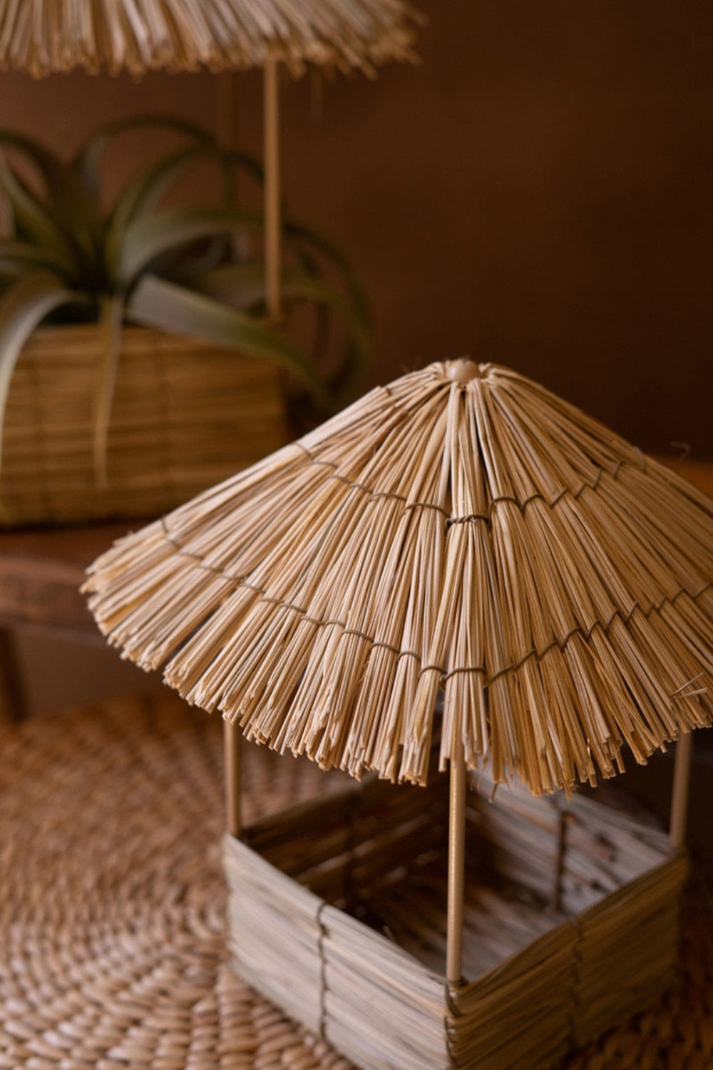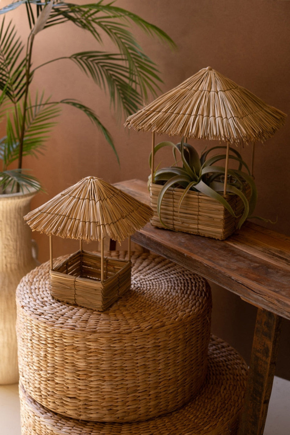Double the natural charm with Two Sets of Seagrass and Iron Bird Houses by Kalalou. This collection includes two sets of handwoven seagrass bird houses, each featuring one large and one small design. Crafted with a sturdy iron frame and natural seagrass weave, these bird houses blend organic beauty with durability. The rustic brown finish complements farmhouse, coastal, or bohemian décor styles. Perfect for display on patios, porches, or indoor shelves to bring a touch of nature-inspired texture to your space.