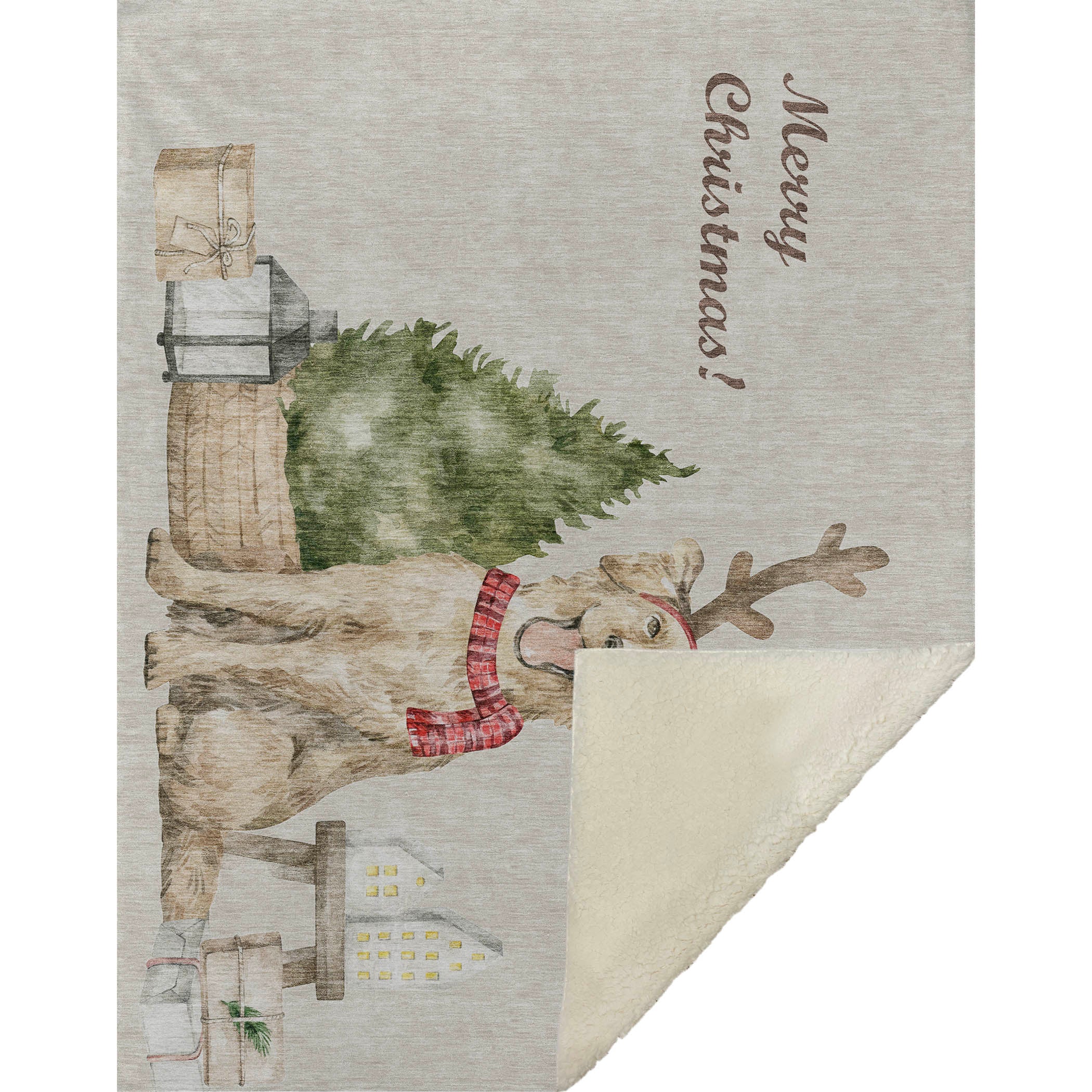 Add playful holiday charm to your home with this Holiday Dog & Tree Throw Blanket. Featuring a cheerful golden retriever wearing festive antlers alongside seasonal tree motifs, this design brings warmth and personality to living rooms, bedrooms, and guest spaces. Measuring 50" x 70", it provides generous coverage for sofas, beds, and cozy lounging.Crafted from 100% polyester microfiber, the blanket offers a luxuriously soft-touch front paired with a plush backing for enhanced warmth and comfort. The rectangular silhouette drapes smoothly, making it ideal for layering during colder months or styling as a festive decorative accent.Fade-resistant and machine made for long-lasting durability, this throw is suitable for indoor and covered outdoor use. Machine wash on a gentle cycle and tumble dry low for easy care. Final crafting completed in the USA using domestic processing on an imported substrate. Includes a 30-day limited manufacturer warranty.