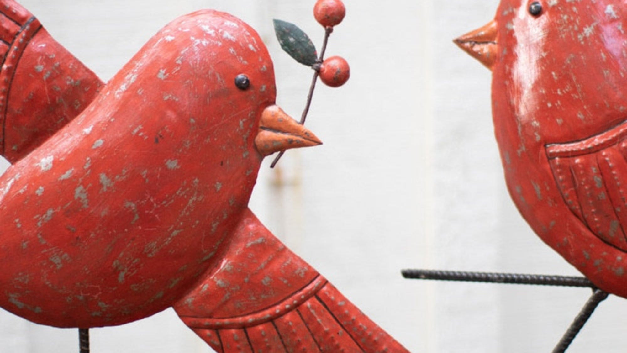 Set of 2 Hand-Hammered Red Metal Bird Stakes – 53" Tall by Kalalou