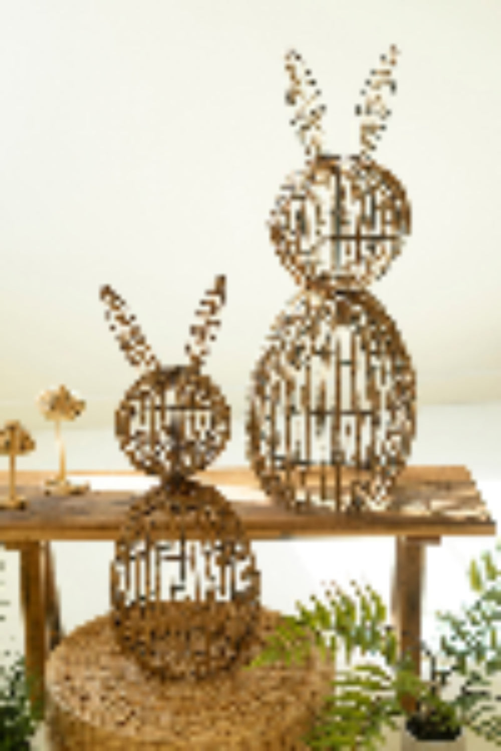 SKU - KAL-CDEX1030KSet of 2 Twig and Iron Rabbit Sculptures – 30" Tall Decorative Figures