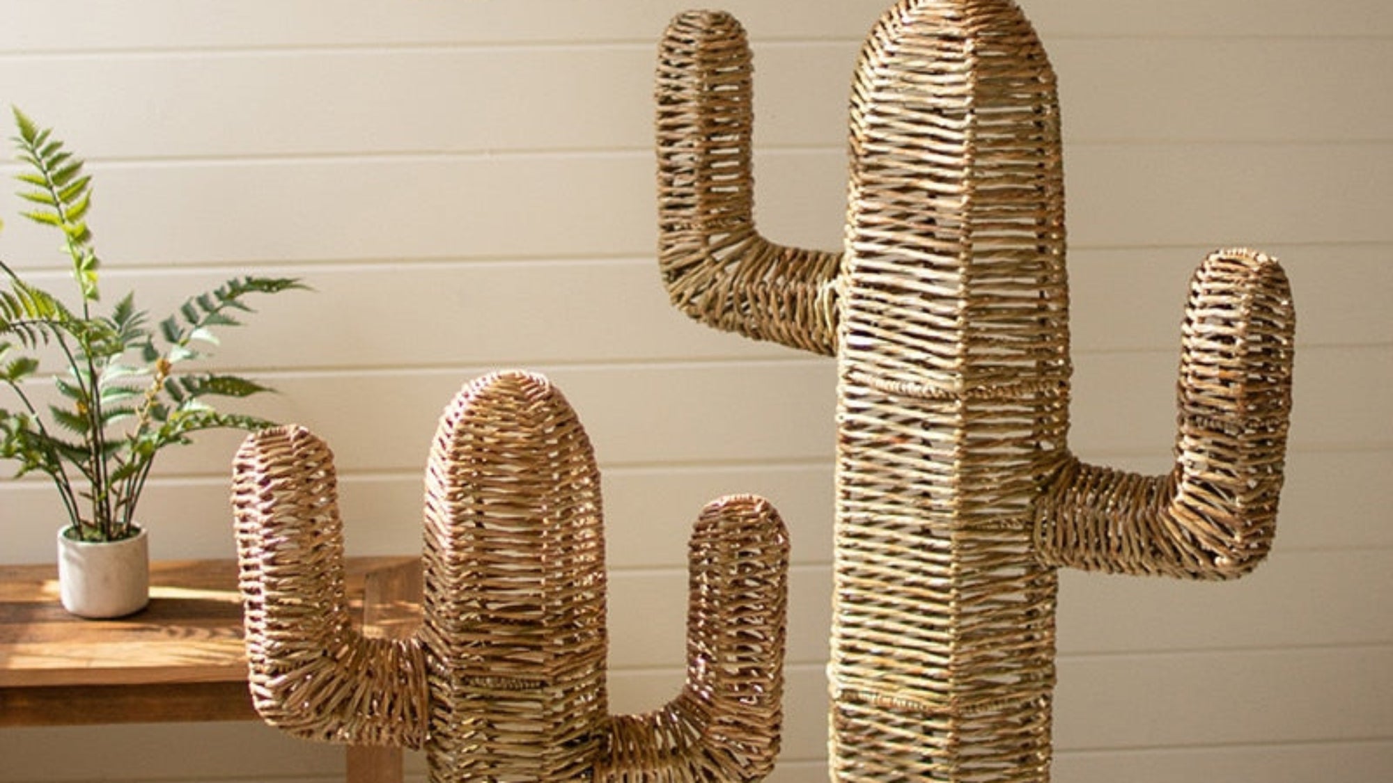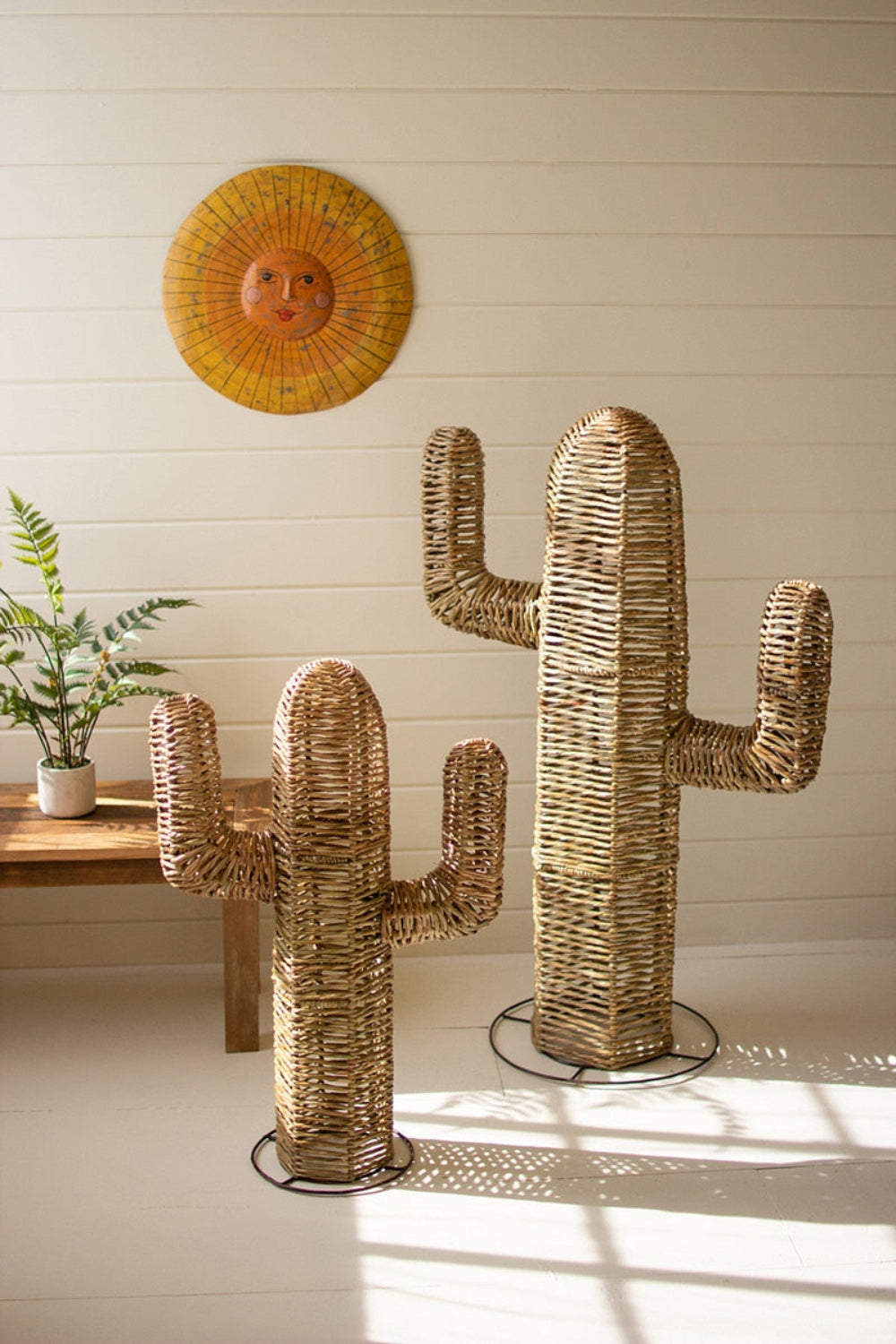 Set of 2 Woven Seagrass Cactus Sculptures 44.5"Tall by Kalalou