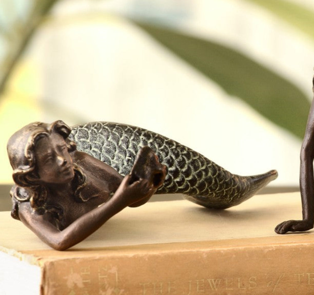 aluminum mermaid décor,bathroom coastal décor,beach shelf accents,beach theme décor,coastal home décor,coastal shelf décor,Home Decor,living room coastal décor,mermaid figurines,mermaid shelf sitters,nautical home décor,nautical shelf décor,ocean décor accents,seaside décor,shelf sitter décor,whimsical shelf décor