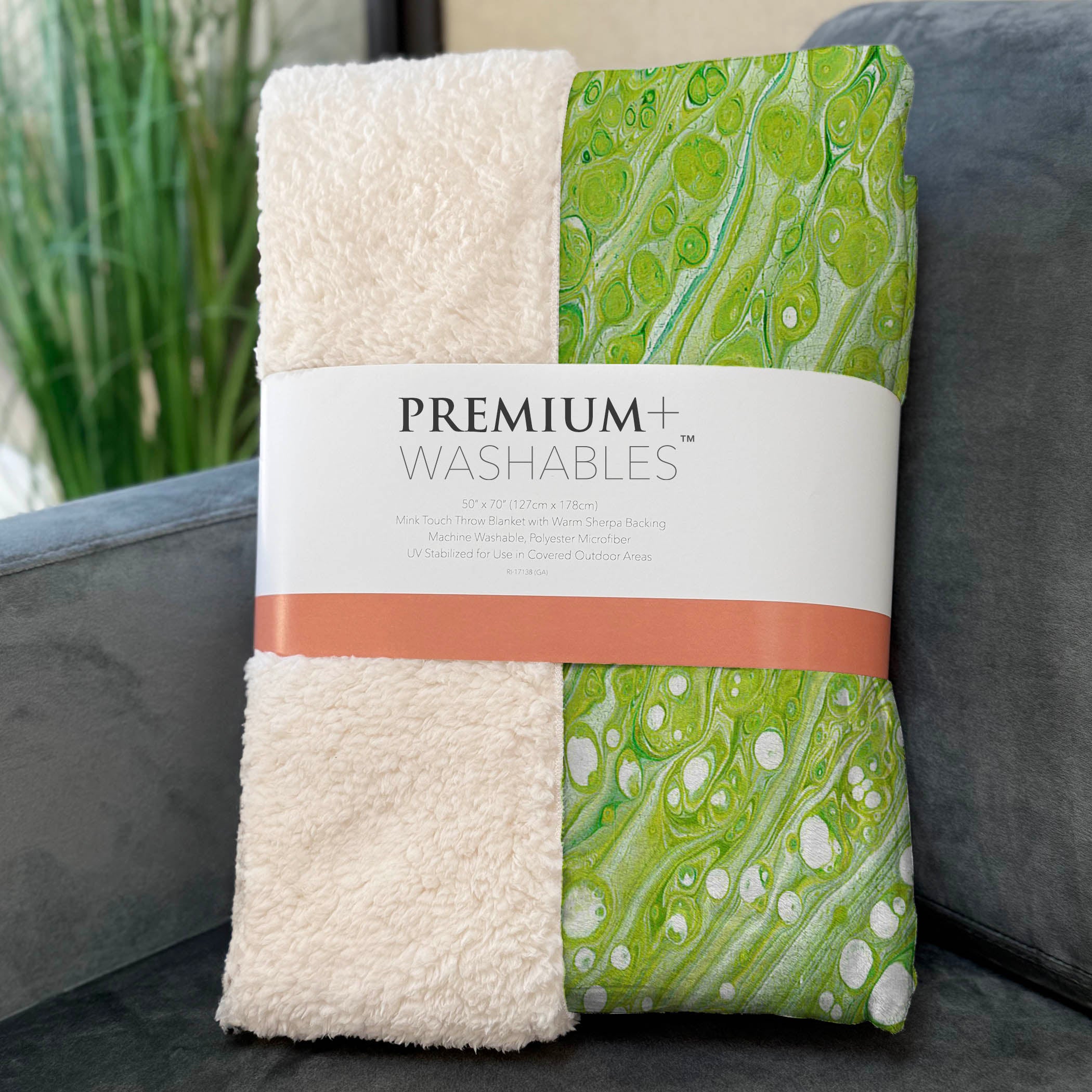 Throw Blanket 50" x 70" Green Abstract Paint Pour Pattern, Soft Touch Microfiber Front, Reversible By One Pixie Street