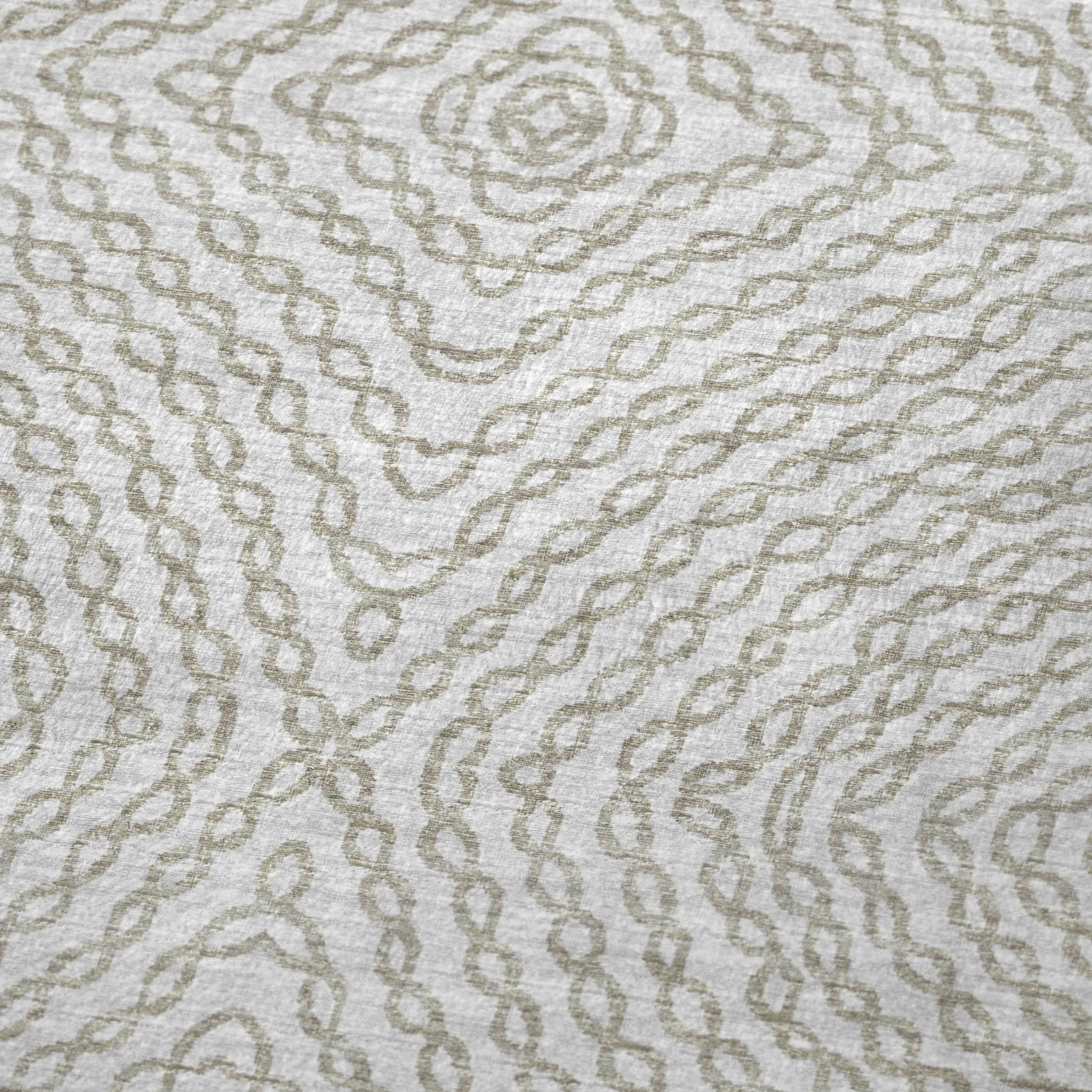 - Transitional Style Accent: Chain link geo pattern adds modern visual interest