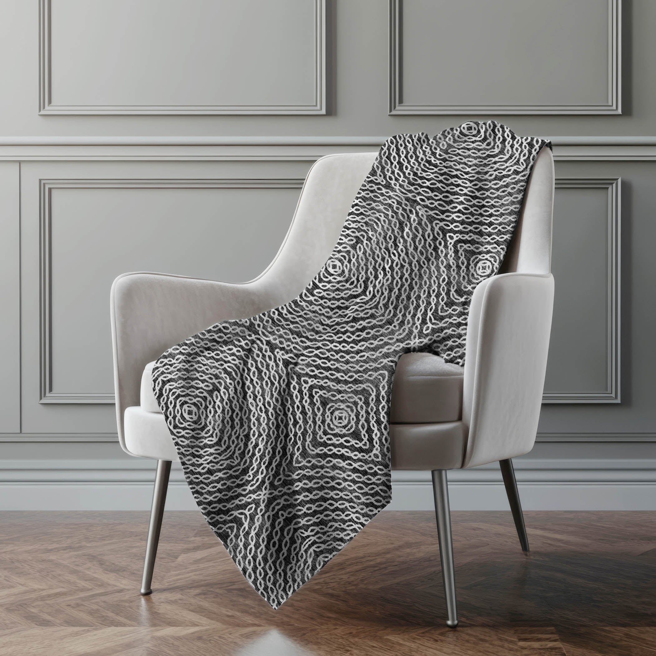 Throw Blanket – 50"H x 70"W Soft Touch Polyester Microfiber, Chain Link Geo Design By One Pixie Street