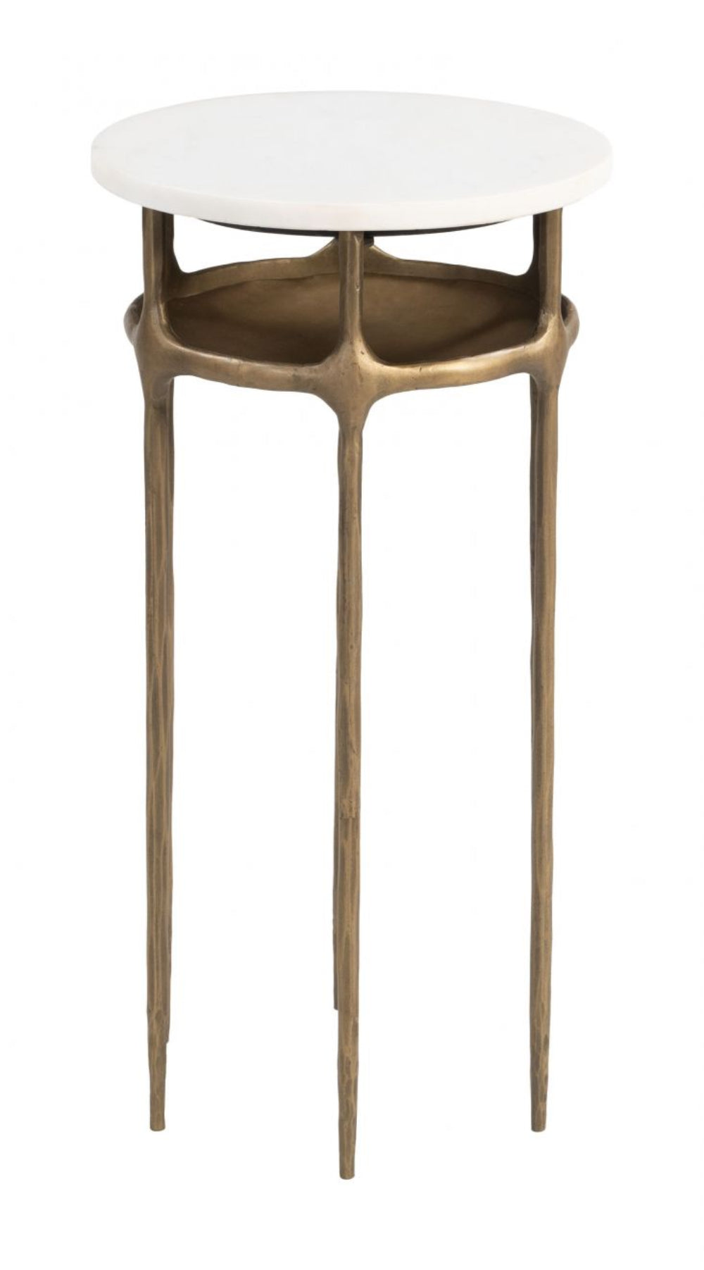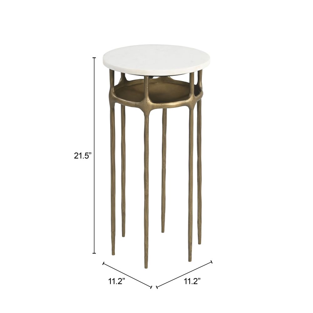 Side Table 21.5"H White & Brass – Modern Marble Top with Iron Frame By Zuo Modern