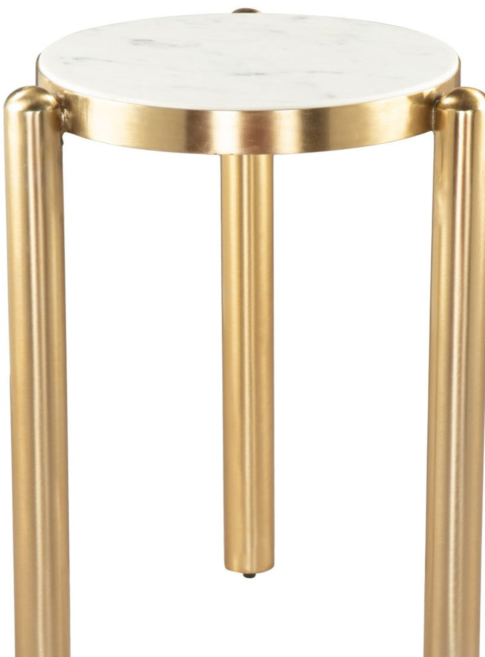 Side Table 22.4" H – White & Gold, Marble Round Top & Electroplated Iron Base by Zuo Modern