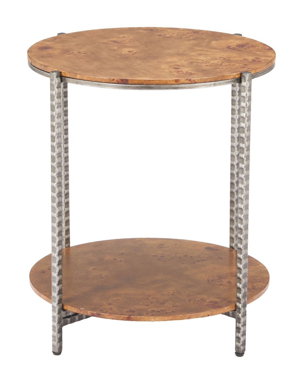 SKU - ZUO-110750Side Table 22" H – Brown, Burl Veneer MDF Round Top & Hammered Steel Base