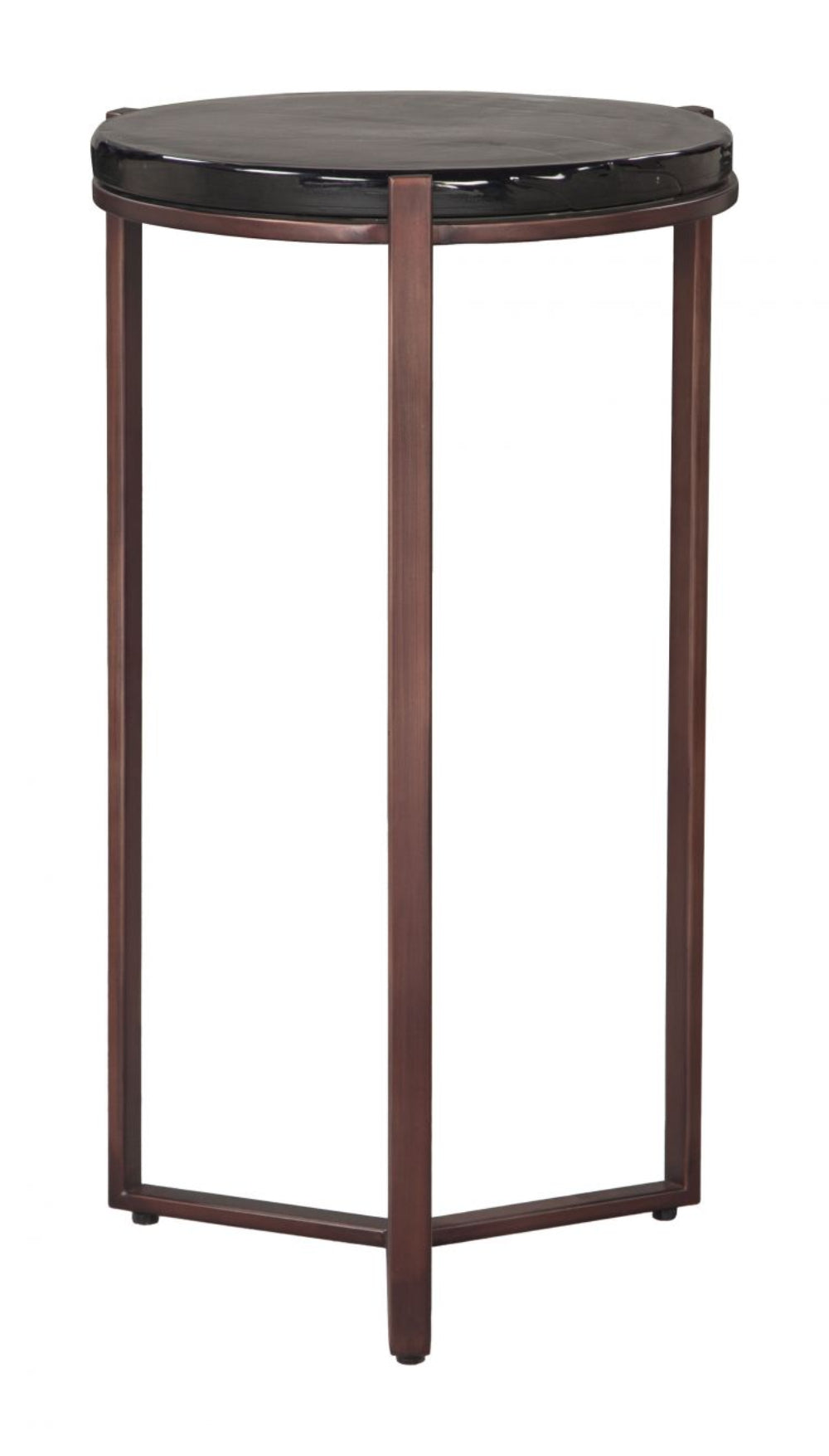 Side Table 22"H Bronze – Modern Recycled Sand Cast Glass with Iron Frame By Zuo Modern