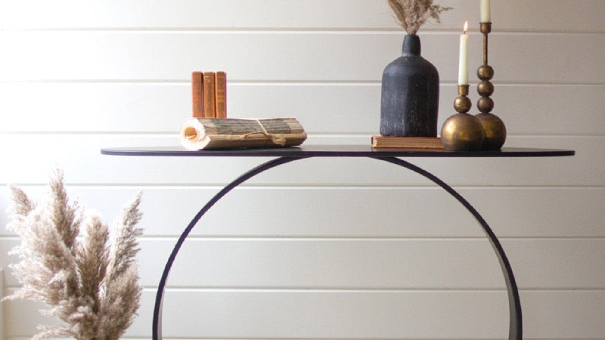 Elevate your space with the Oval Metal Console Table by Kalalou, designed to bring modern simplicity and functional style into any room. Measuring 43.5" W × 14" D × 34" H, this streamlined console fits beautifully in entryways, hallways, living rooms, or dining spaces. The elongated oval top provides an elegant surface for decorative objects, table lamps, art pieces, or storage baskets underneath.Crafted from durable metal, the table’s open-frame design keeps your space feeling light and uncluttered. Whether used as a hallway accent or a behind-the-sofa styling piece, this versatile console enhances your home with clean lines and practical display space.