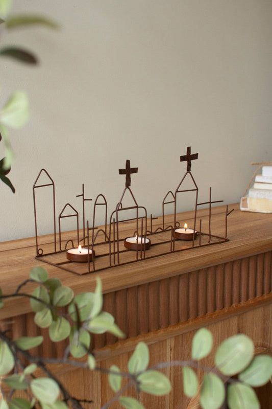 Slim Wire Wall Tealight Sconce – Distressed Metal 12" Set of 4 by Kalalou