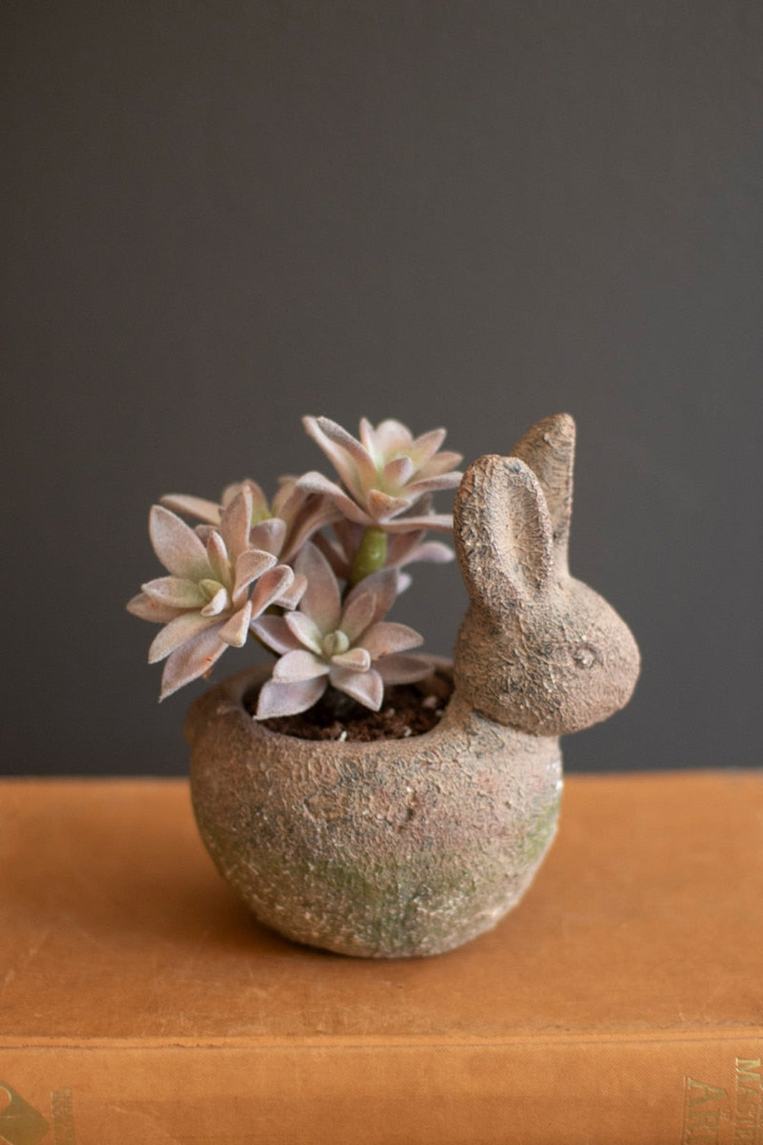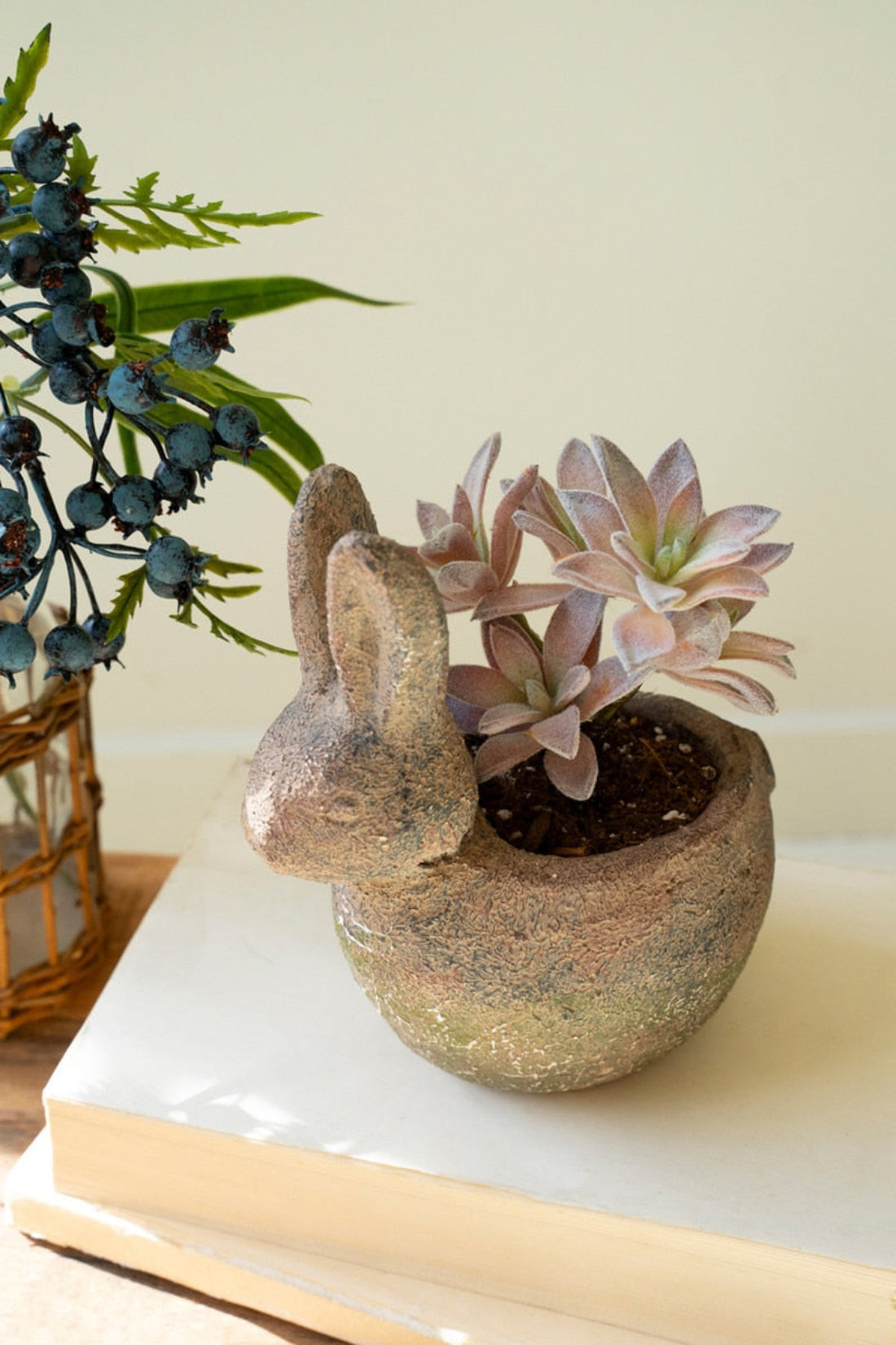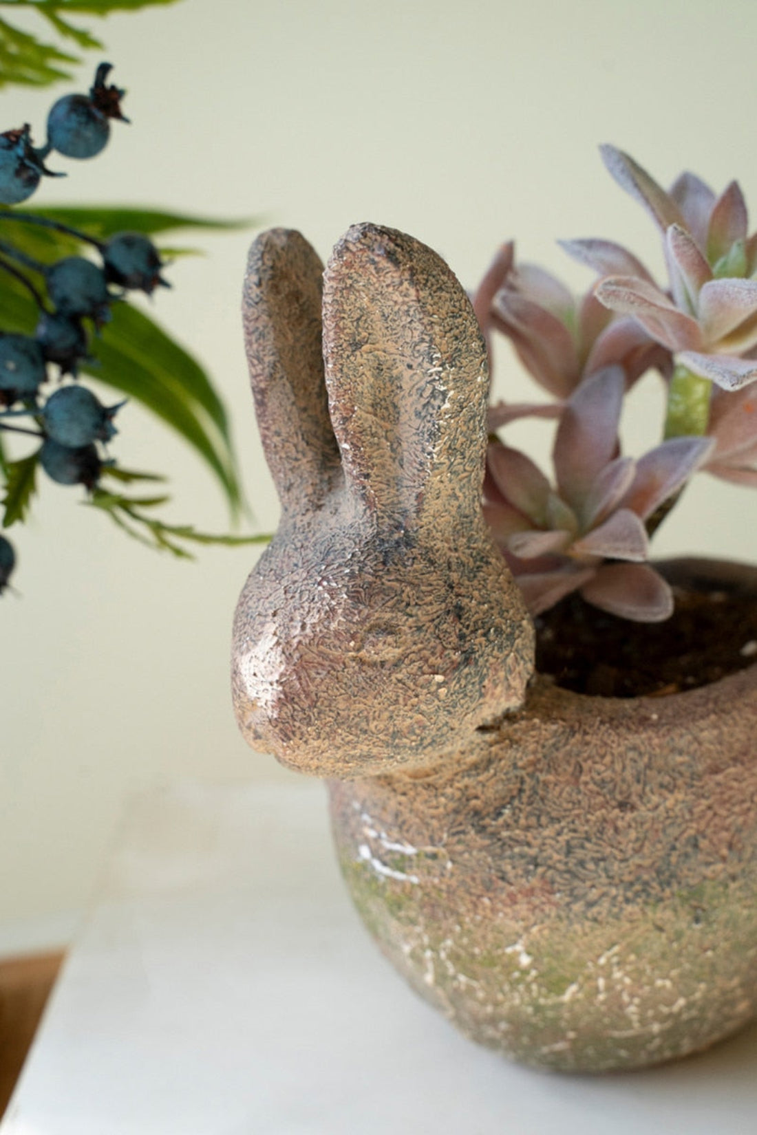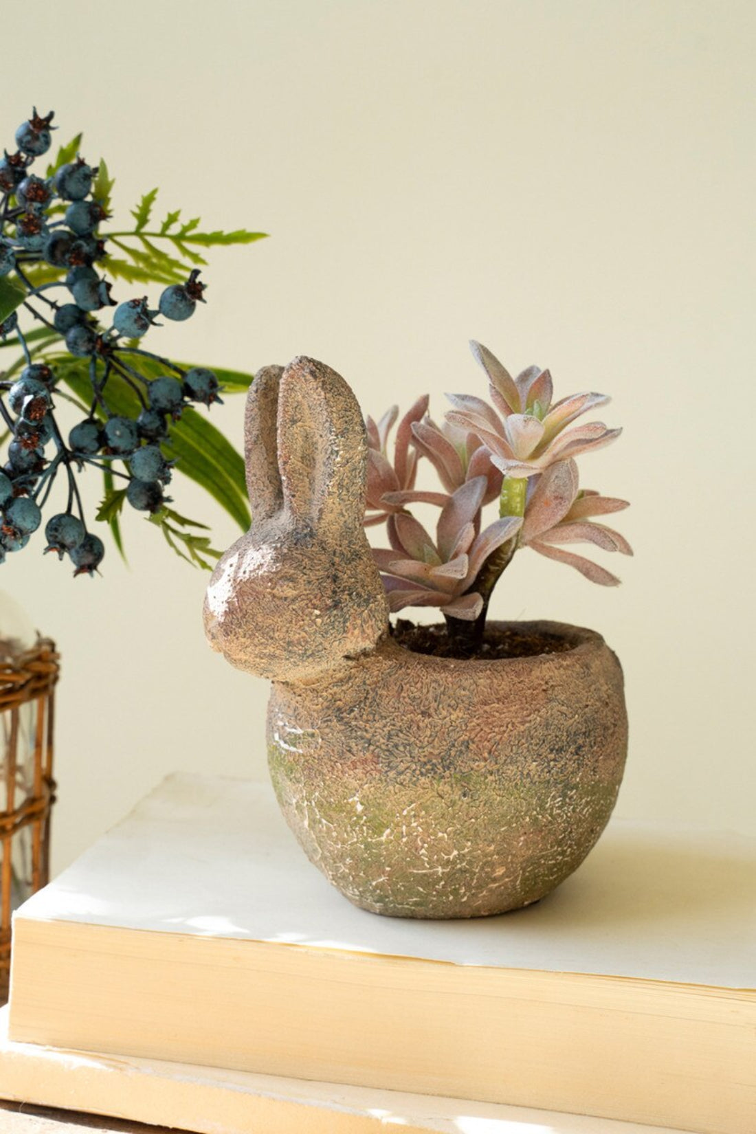 SKU - KAL-CDL3208Small Rustic Rabbit Planter 4 inch Terracotta – Grey Distressed Look by Kalalou
