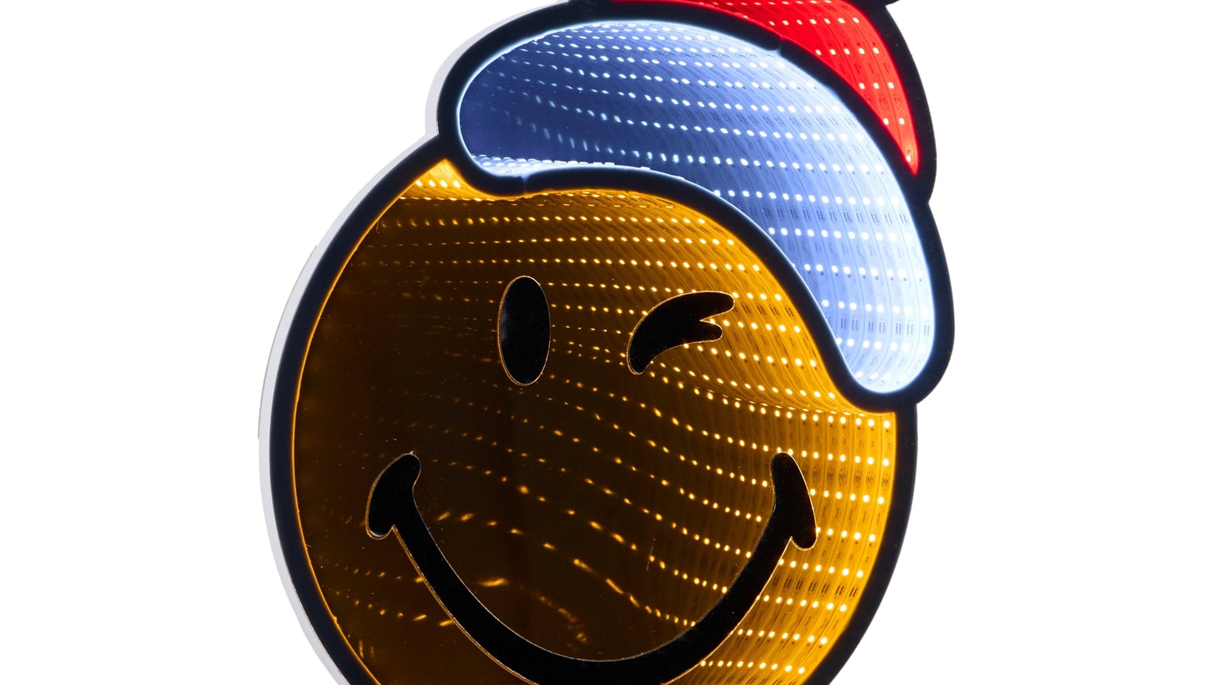 This Smiley Face Ekkolight adds a playful holiday accent to indoor spaces with its bright coloring and cheerful Santa hat design. Crafted from Acrylic, PET Plastic, and EVA Foam, it offers durable construction with a lightweight feel for easy placement on walls or narrow surfaces. The UL approved plug ensures reliable illumination for seasonal decorating. The slim 1 inch depth allows the piece to fit comfortably in tight areas while still providing a standout visual. Its orange, red, and white color palette makes it suitable for festive settings in living rooms, entryways, or office spaces. Dimensions: 11.75 inches long, 1 inch wide, and 16 inches high.