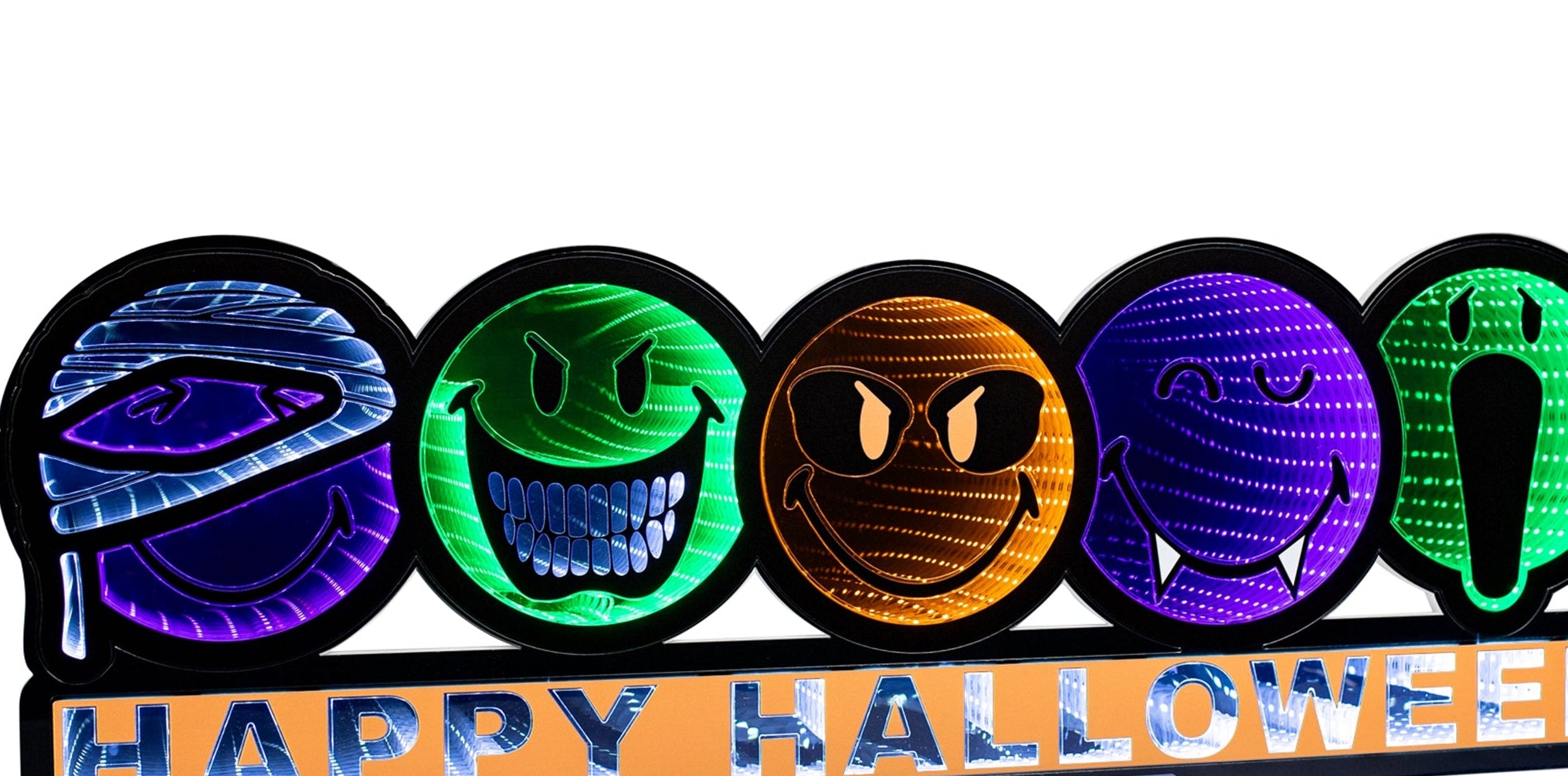 This Smiley Happy Halloween Ekkolight provides a playful and vibrant accent for indoor seasonal decorating. Crafted from Acrylic, PET Plastic, and EVA Foam, it is durable yet lightweight, making it easy to hang or place in narrow spaces. The UL approved plug ensures safe and consistent illumination throughout Halloween celebrations. Its slim 1 inch width allows for flexible placement, while the 12 inch height creates a bold visual display. Featuring purple, green, orange, and black colors, this piece enhances Halloween decor in living rooms, entryways, or offices. Dimensions: 35 inches long, 1 inch wide, and 12 inches high.