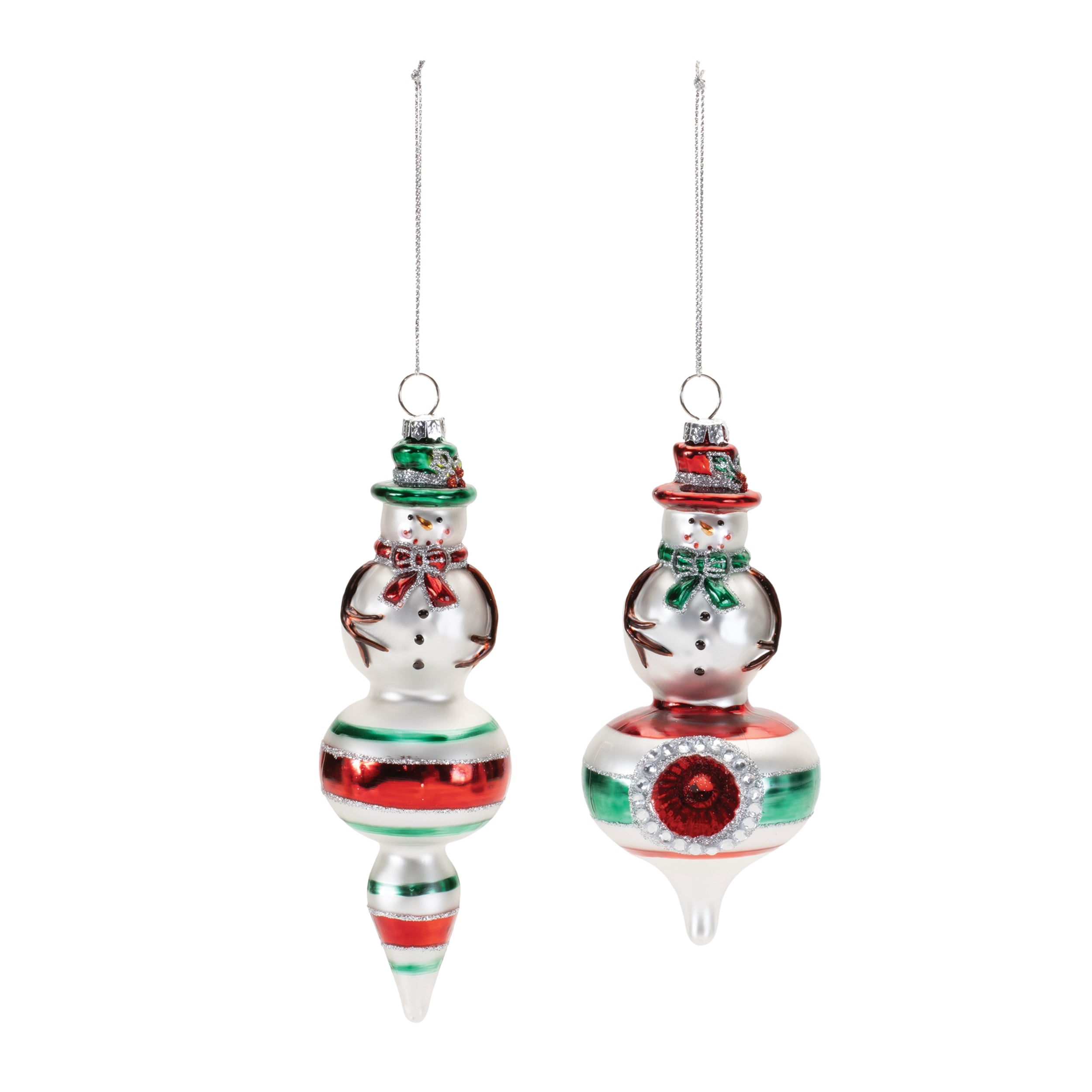 Snowman Drop Ornament (Set of 12) – 5.5"H Glass Silver, Green & Red Christmas Decor By Melrose