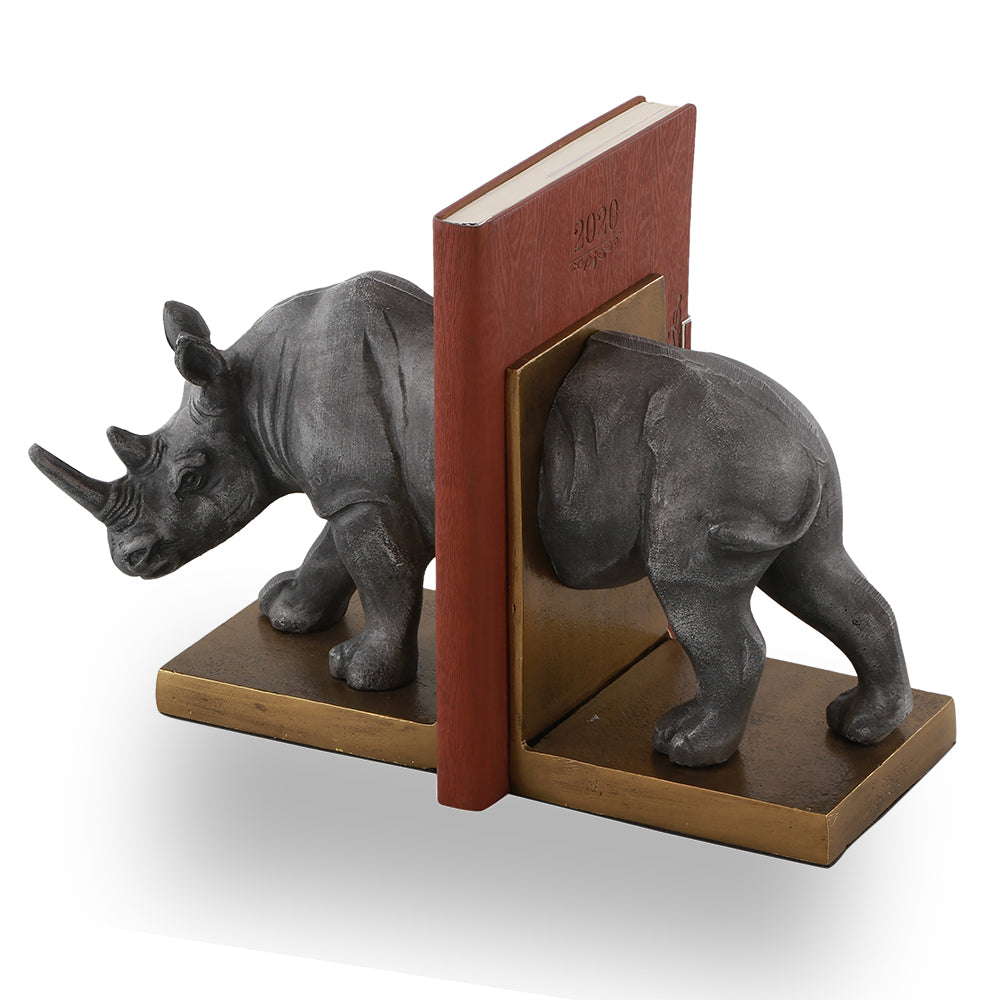 Metal Rhino Bookends Pair – 7.5" Tall Hand-Finished Safari-Themed Desk or Bookshelf Accents