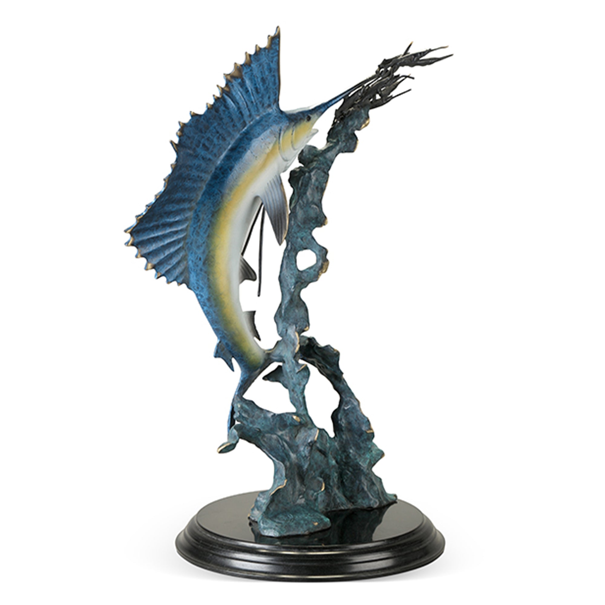 SPI Home Ballyhoo for Sail Sculpture – Striking Sailfish and Ballyhoo Ocean Display