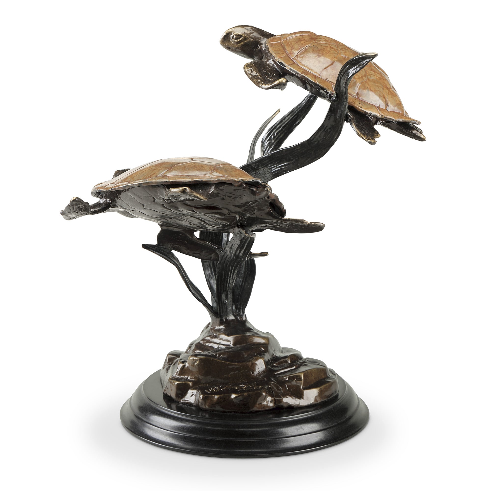 SKU - SPI80385Cast Aluminum Sea Grass Tango Sculpture with Double Turtles – Coastal Garden Accent, 17" Tall