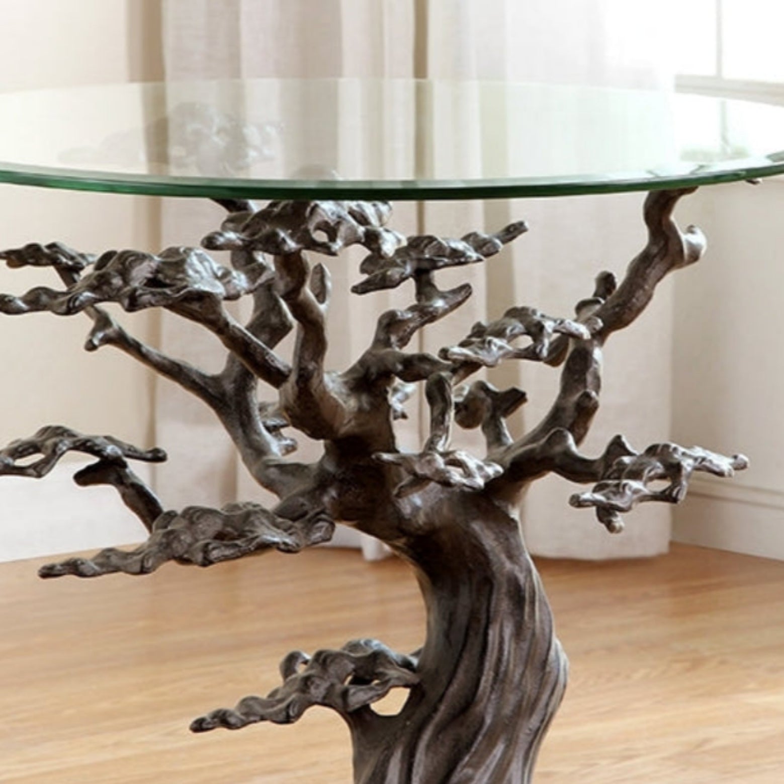 Infuse your living space with natural elegance through the Elegant Cypress Tree End Table. Featuring a sculptural base inspired by the graceful form of a cypress tree, topped with a clear tempered glass surface, this piece beautifully merges organic artistry with refined functionality.