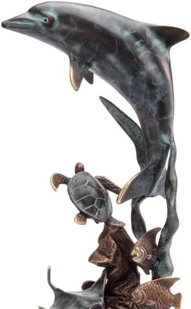 SPI Home Brass Dolphin and Friends Marine Sculpture – 13" Coastal Accent Decor