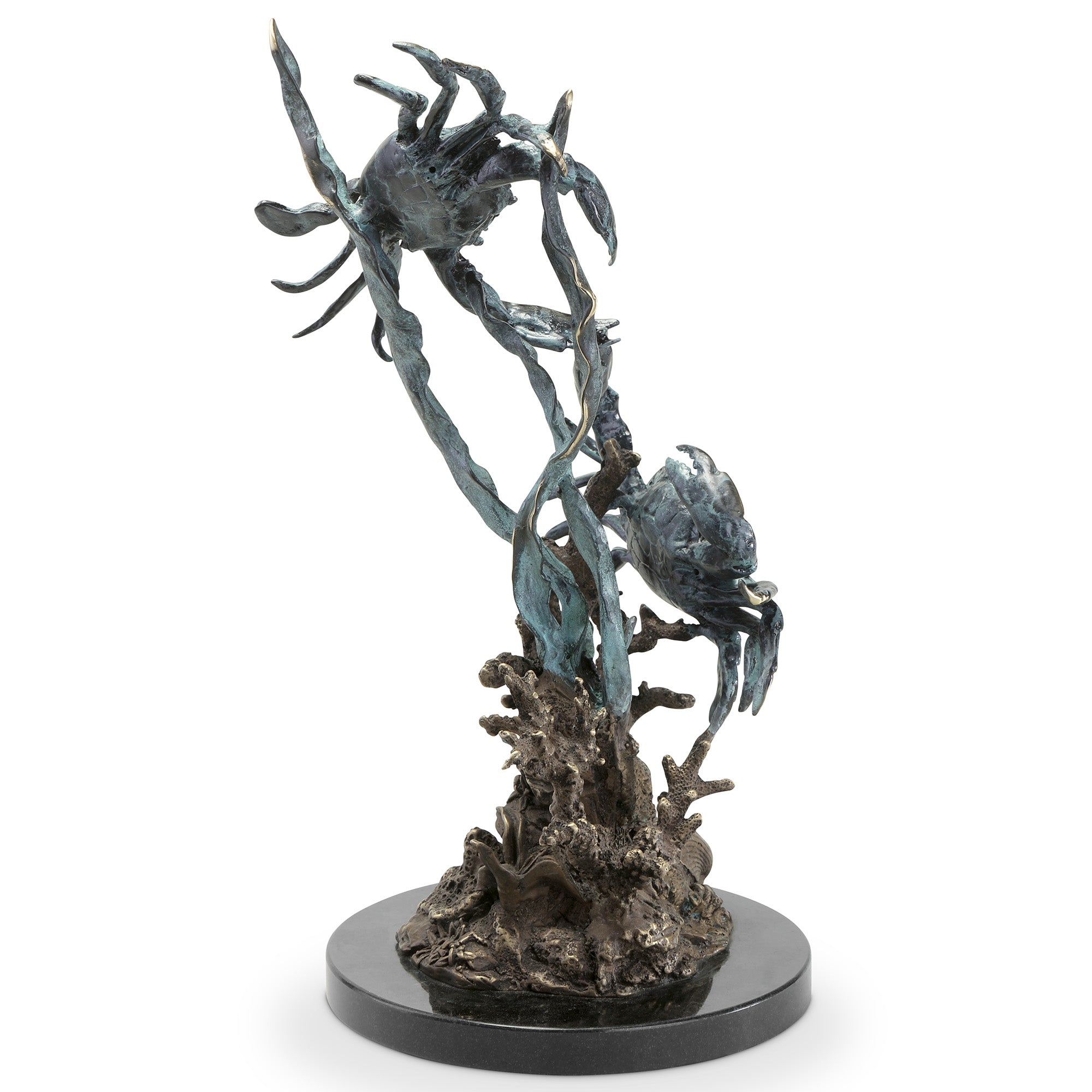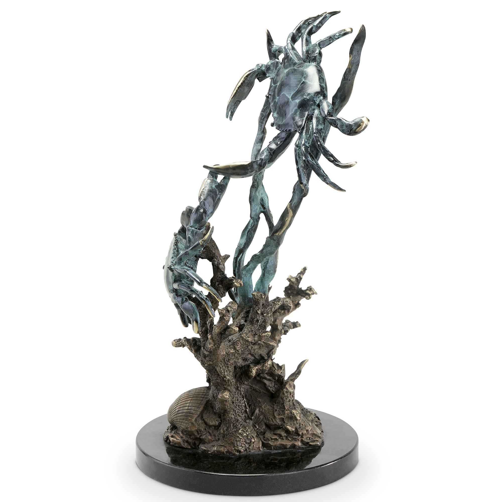 SKU - SPI31543Brass Fighting Blue Point Crabs – 16" Dynamic Marine Life Sculpture