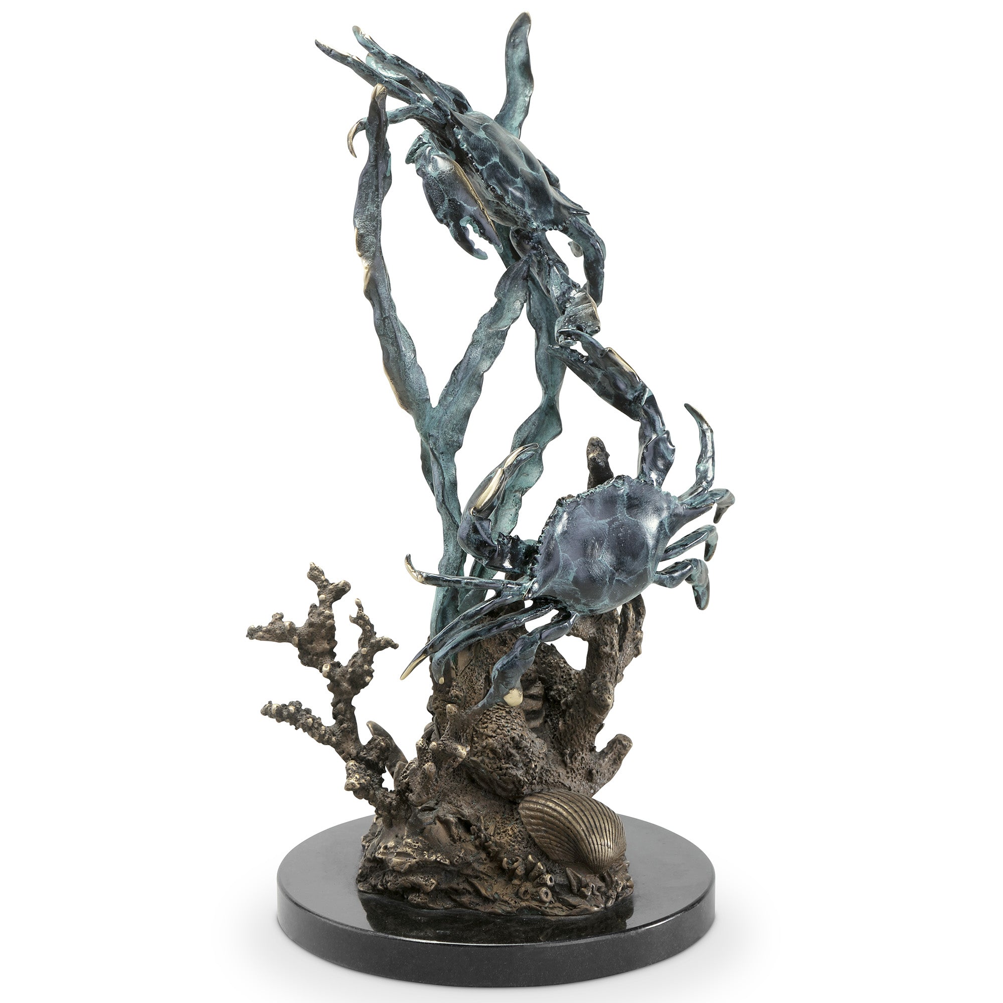SPI Home Brass Fighting Blue Point Crabs – 16" Dynamic Marine Life Sculpture
