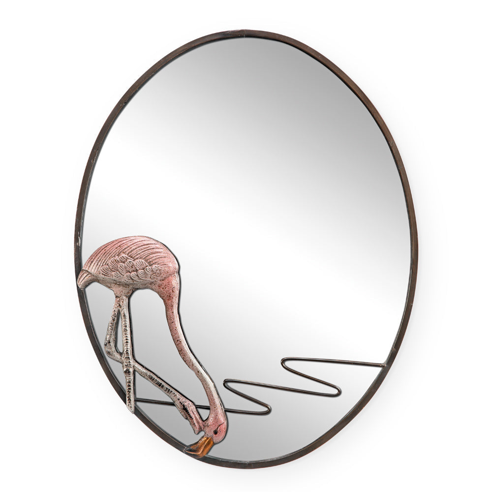 - Frame: Sculptural flamingo design surrounding oval mirror