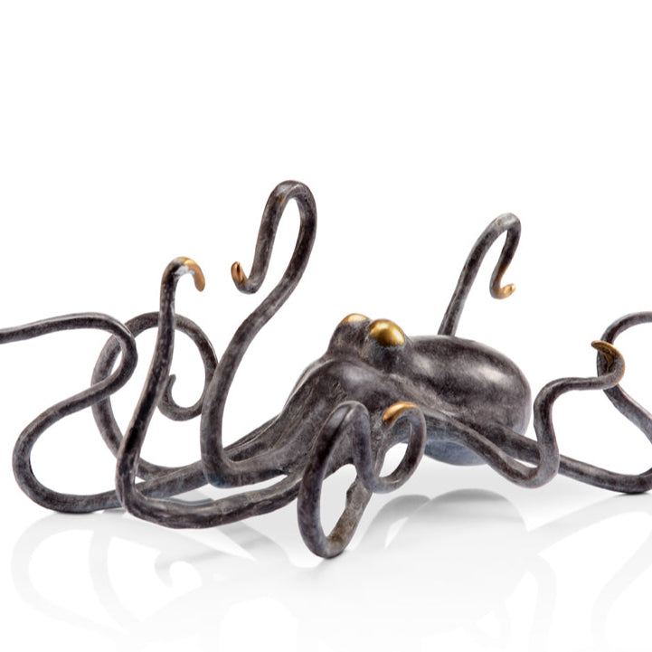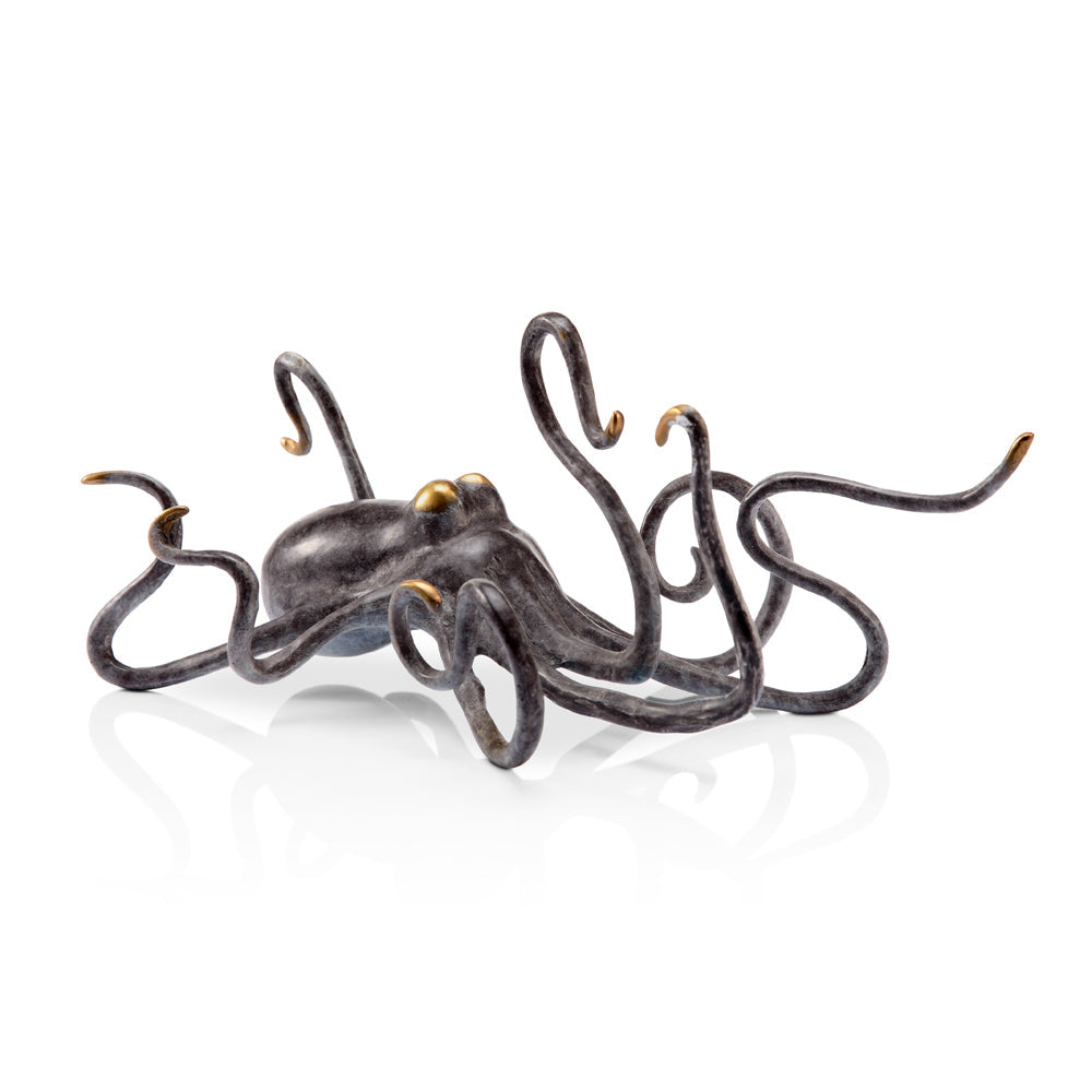 The Grasping Octopus sculpture from SPI Home brings whimsical marine life to your décor in a compact, eye-catching form. Cast in solid brass, this expressive octopus appears mid-motion with its curling tentacles reaching outward in animated detail. At just 4 inches tall and 9.5 inches wide, this petite sculpture is ideal for desks, shelves, or as a decorative paperweight. Whether styled in a beach house or used as a small conversation piece, it adds a splash of ocean charm and nautical energy to any room.