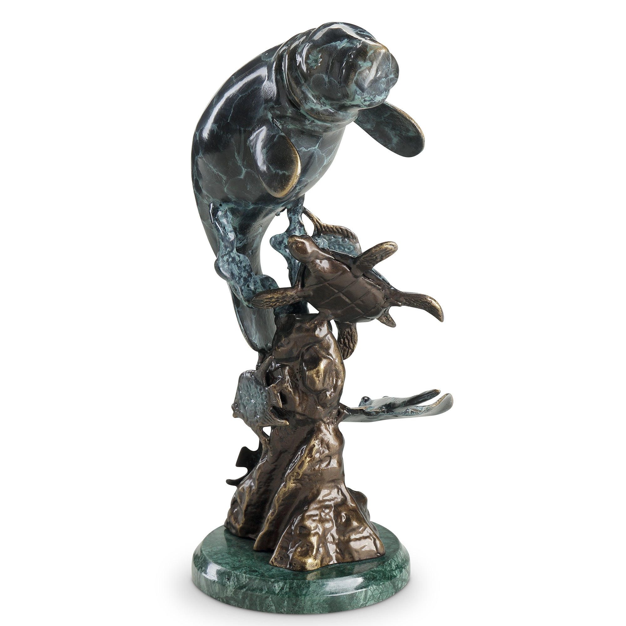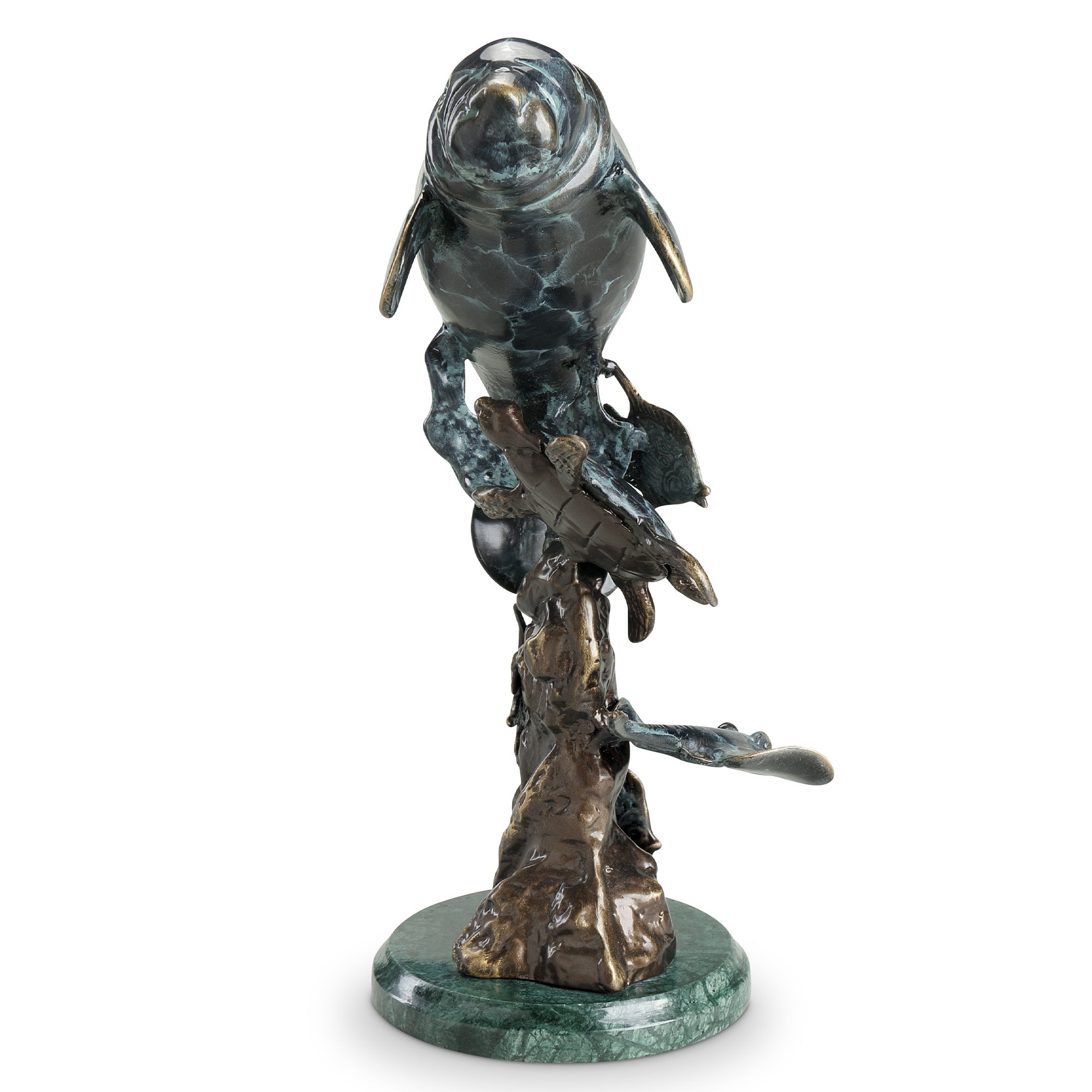 SKU - SPI30467Brass Manatee and Friends Figurine – 12" Ocean-Inspired Tabletop Decor