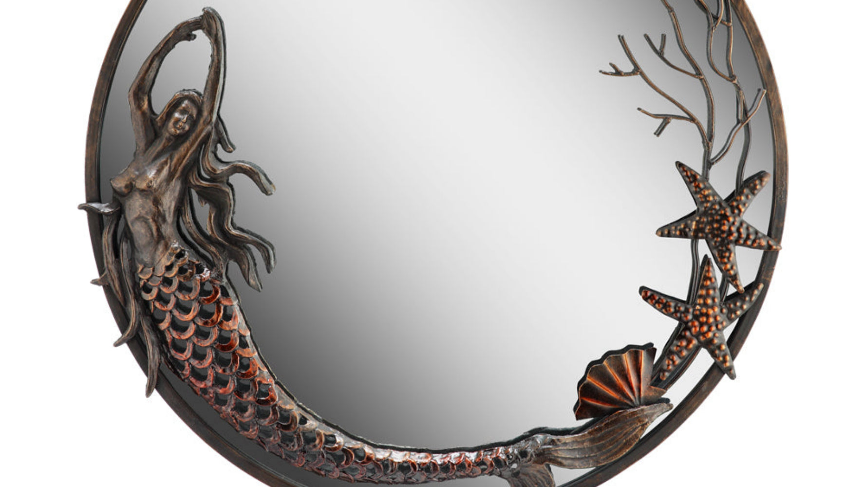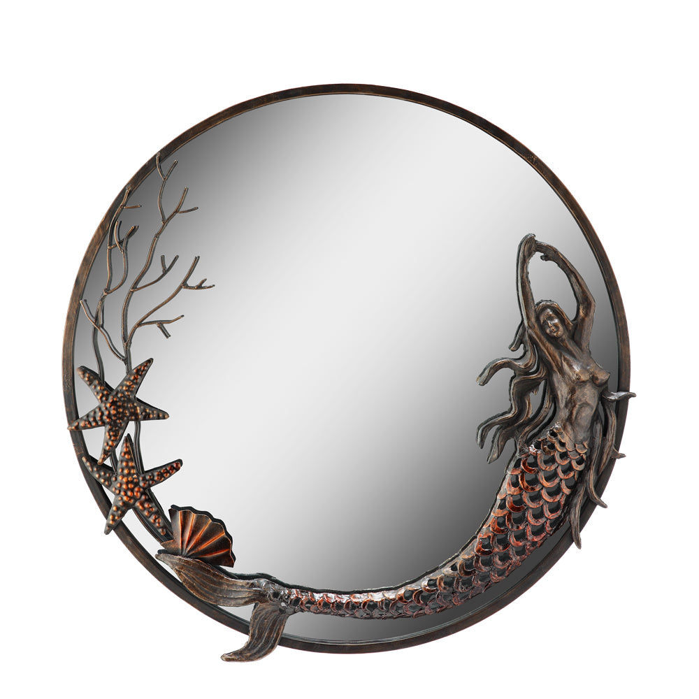 SPI Home Mermaid Round Mirror – 22" Iron Wall Mirror with Coastal Mermaid Frame, Nautical Accent Decor