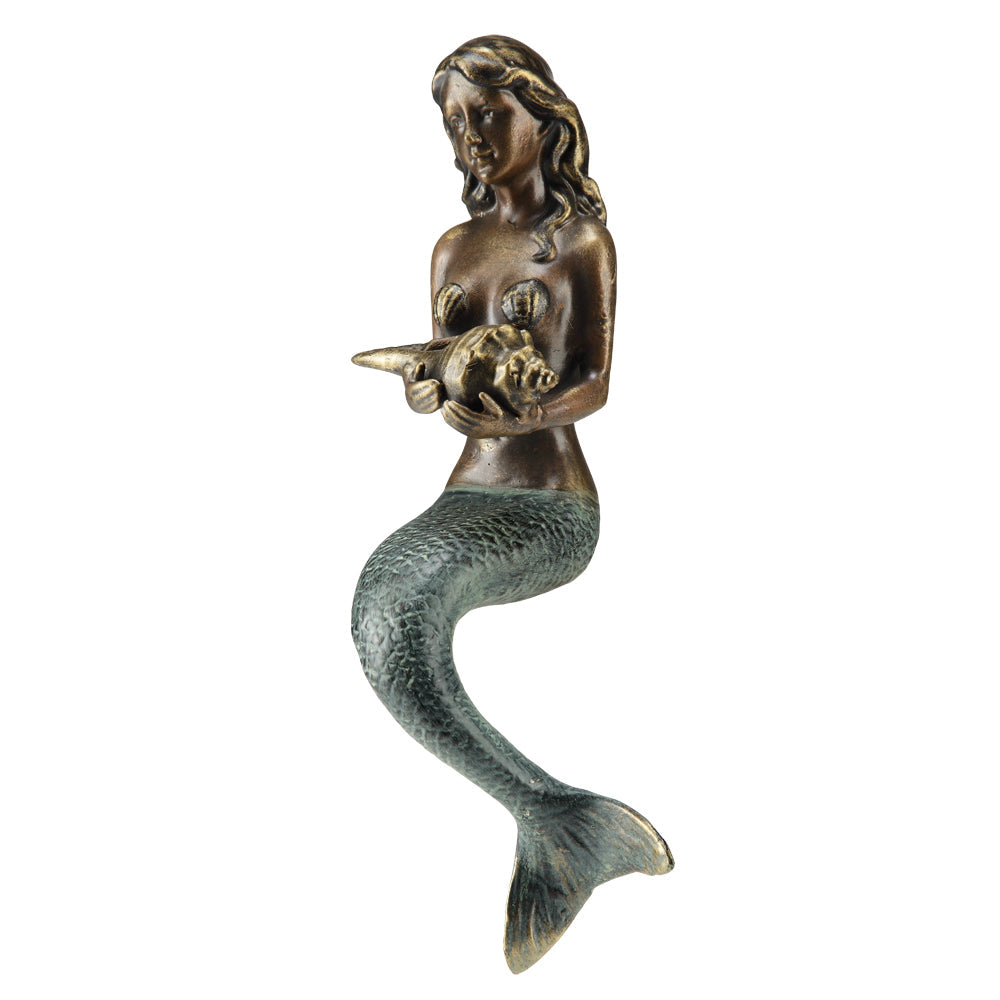 SPI Home Mermaid Shelf Sitter – 13" Handcrafted Cast Aluminum Coastal Figurine, Nautical Mermaid Accent for Ledge, Mantel, or Beach Décor