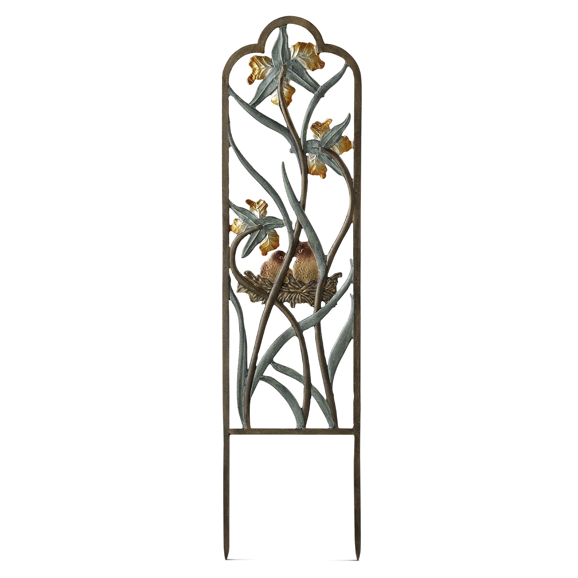 SPI Home Narrow Lovebirds in Nest Trellis – 33" Tall Cast Aluminum Outdoor Decor with 7.75" Spikes and Romantic Garden Detail