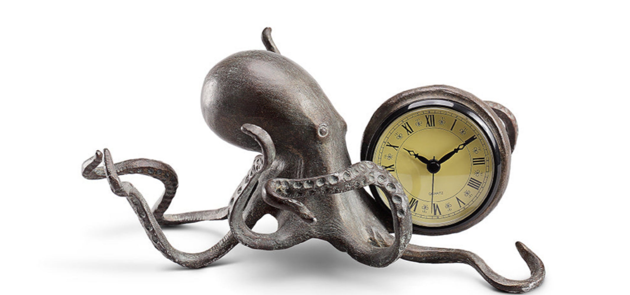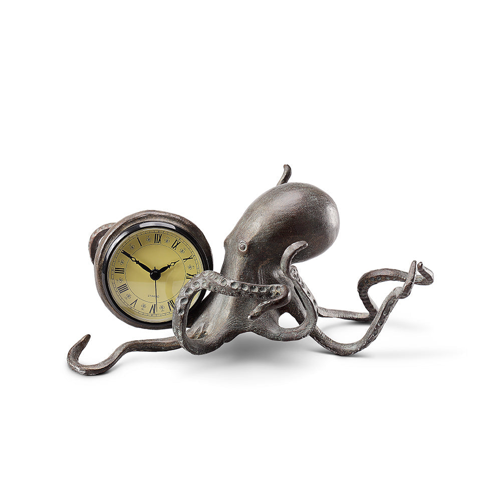 SPI Home Octopus Desk Clock – 11" Wide Nautical Aluminum Timepiece, Coastal Marine-Inspired Sculpture for Office or Bookshelf Display