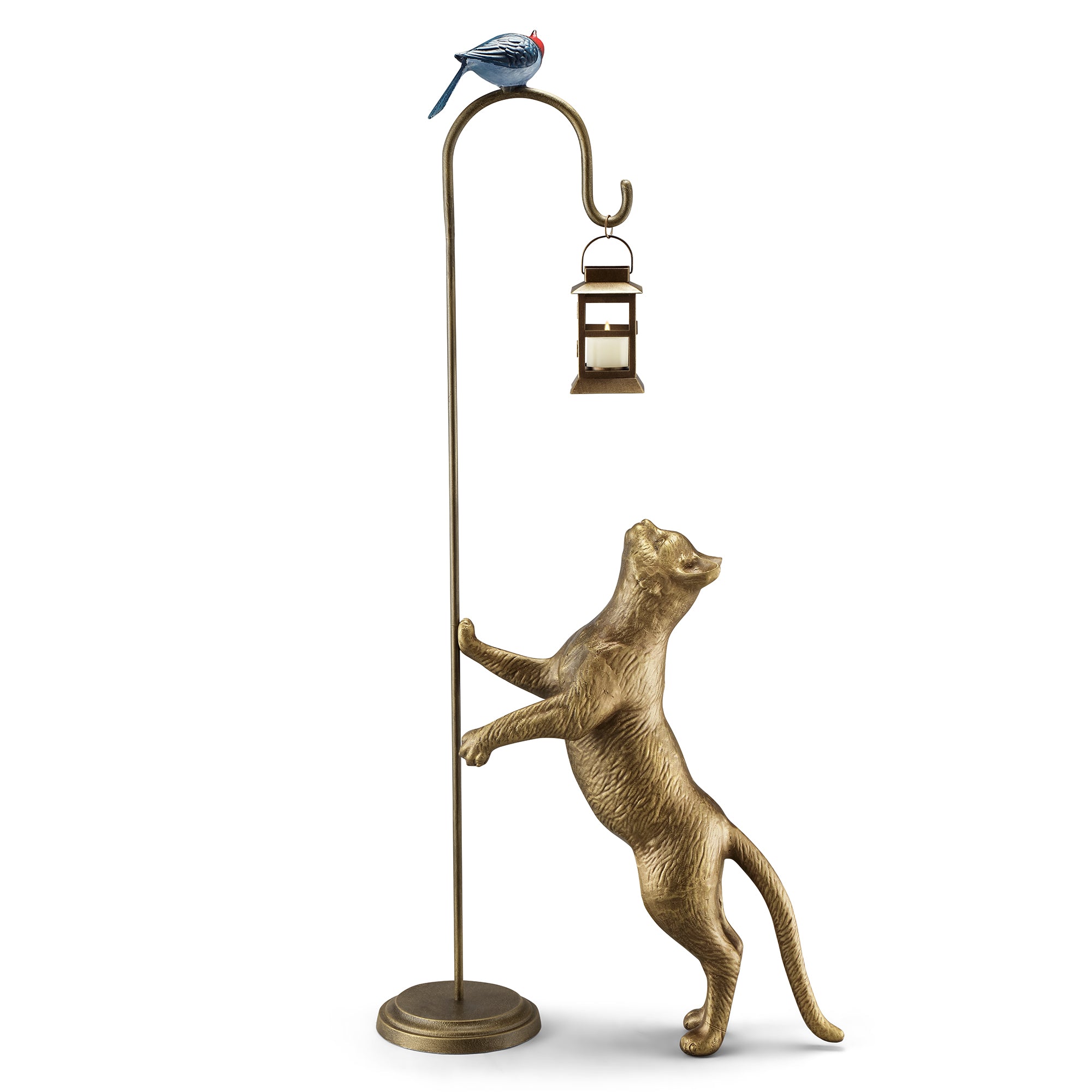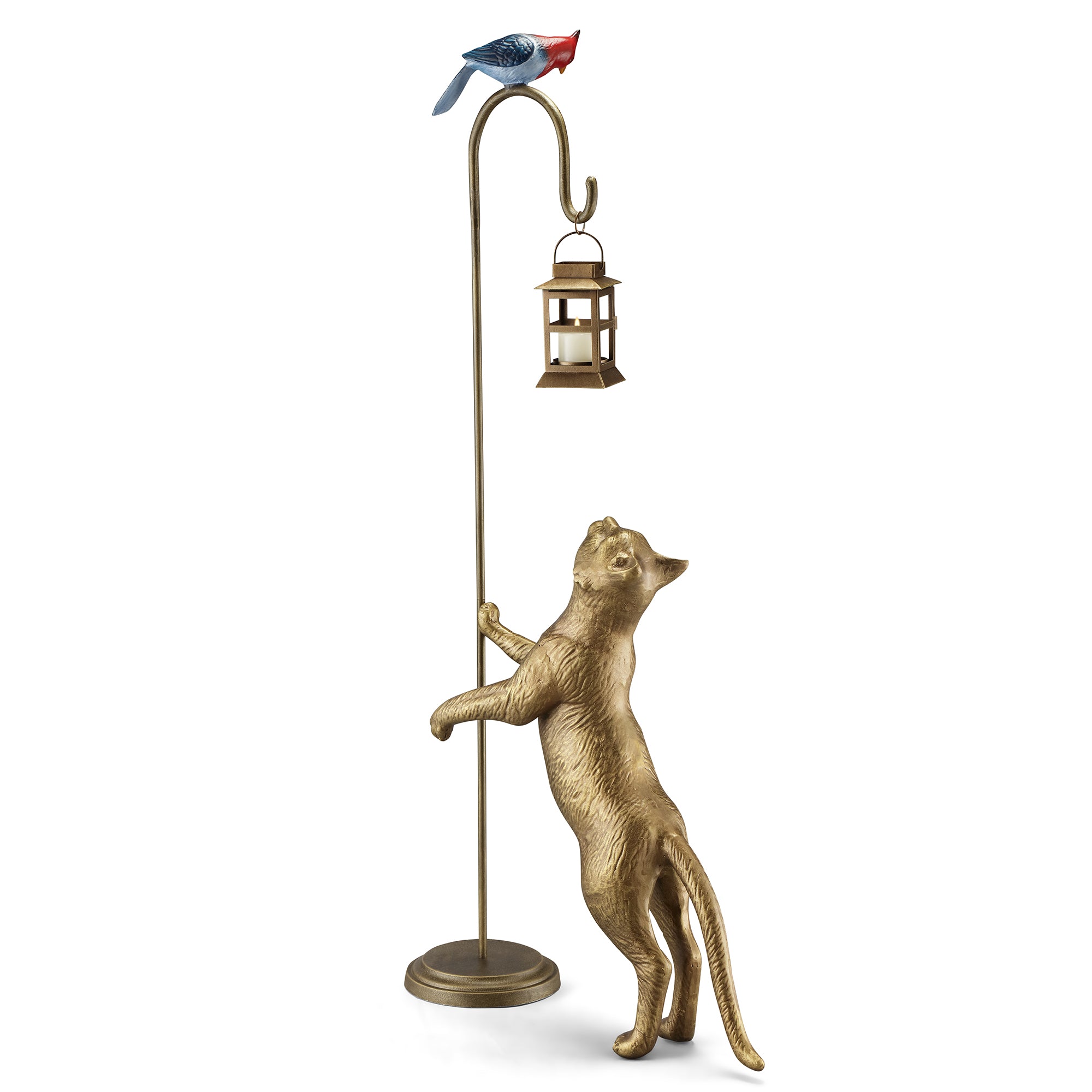SPI Home Snacktime Cat with Bird Garden Lantern – 43" Tall Cast Aluminum Outdoor Sculpture with Whimsical Animal Design