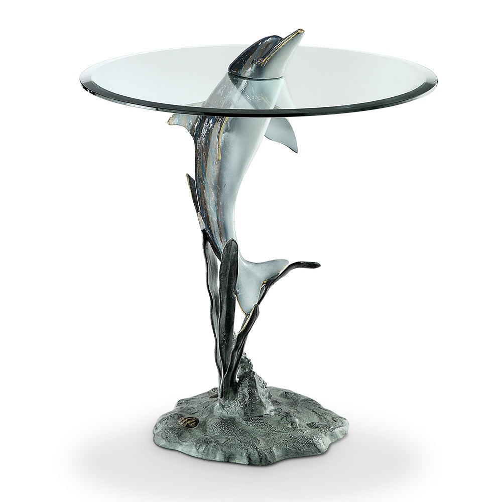SPI Home Ocean Theme Surfacing Dolphin End Table With Glass Top